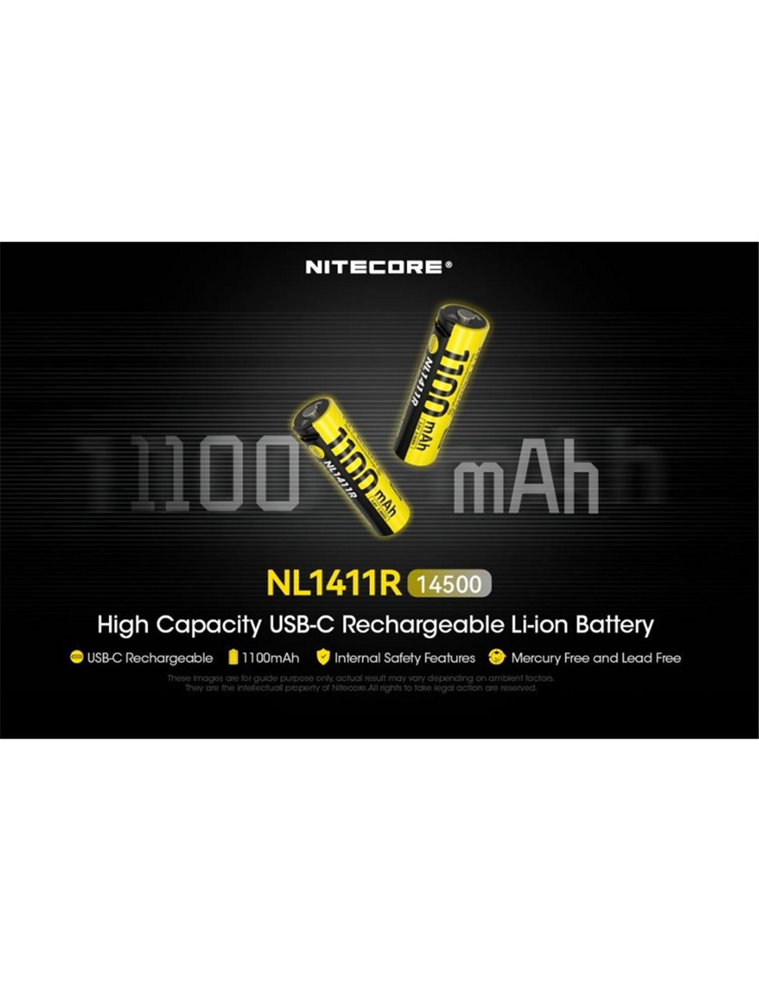 NITECORE NL1411R 14500 mit 1100 mAh Kapazität und konstanter Spannung von 3.6V. Direkte Aufladung über USB-C Anschluss, ideal für leistungsstarke AA LED-Taschenlampen. Bietet kontinuierliche Entladung von 3 A, mit integriertem Schutz und LED-Ladeanzeige. Kompakt, sicher und langlebig.