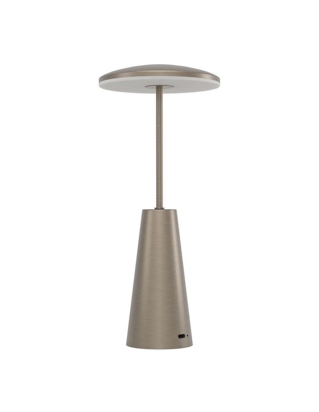 Die dunkle Messing-Oberfläche verleiht ihr ein elegantes und langlebiges Aussehen, während der USB-Anschluss und der Dimmer Praktikabilität und Vielseitigkeit in der Anwendung hinzufügen. Ihr wiederaufladbares Design ermöglicht flexible Platzierung ohne Kabel, ideal für jeden Außenbereich.