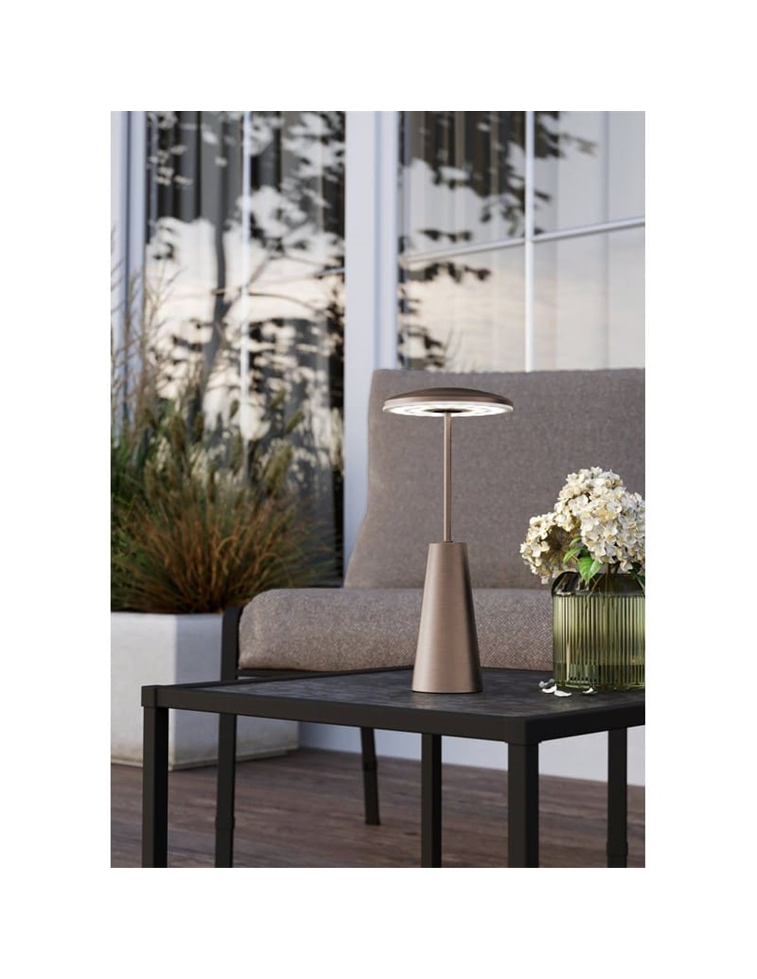 Wiederaufladbare LED-Außen Tischlampe, Serie PICCOLA aus dunklem Messing, 2400K-3000K-4000K, IP54, Eglo Beleuchtung