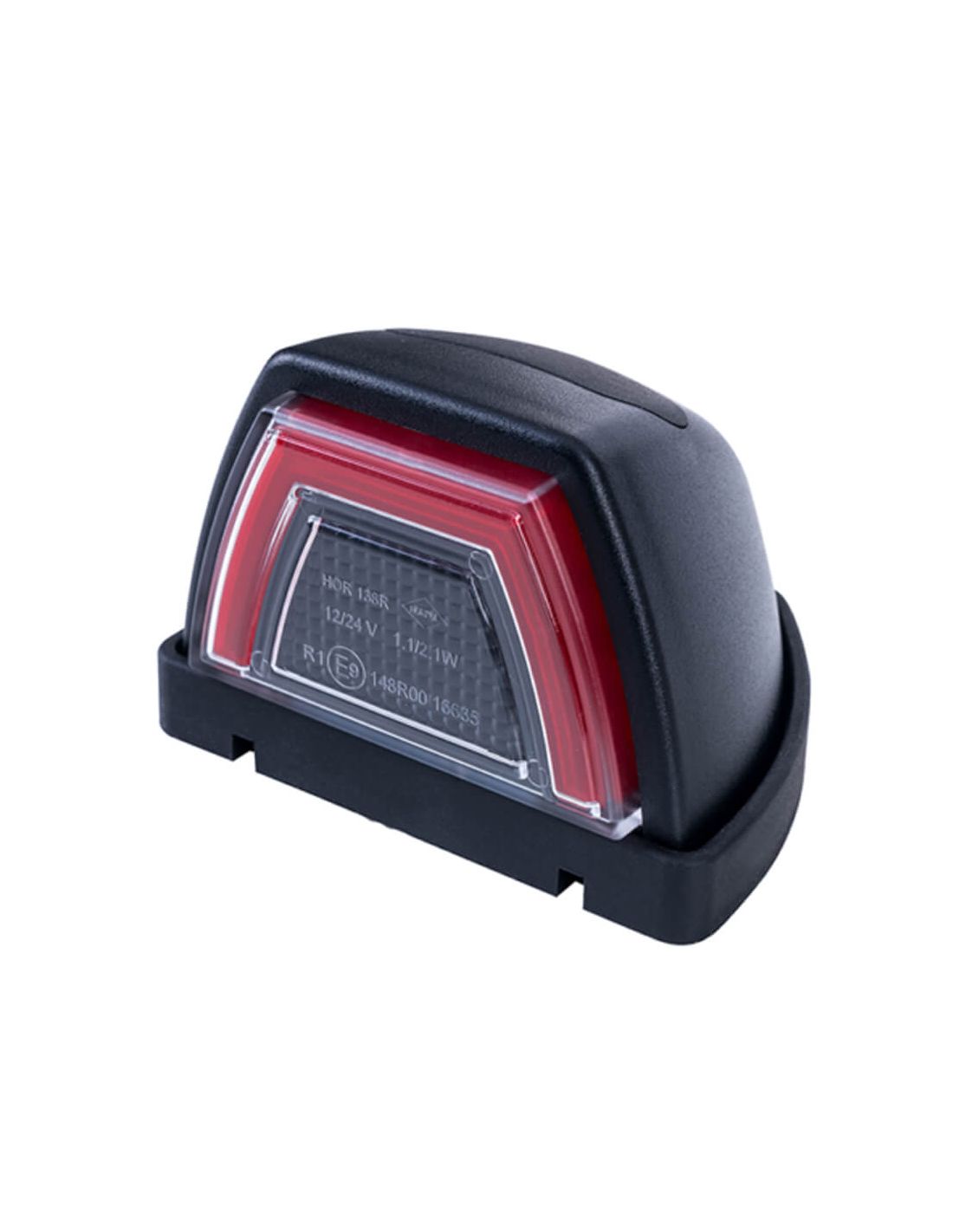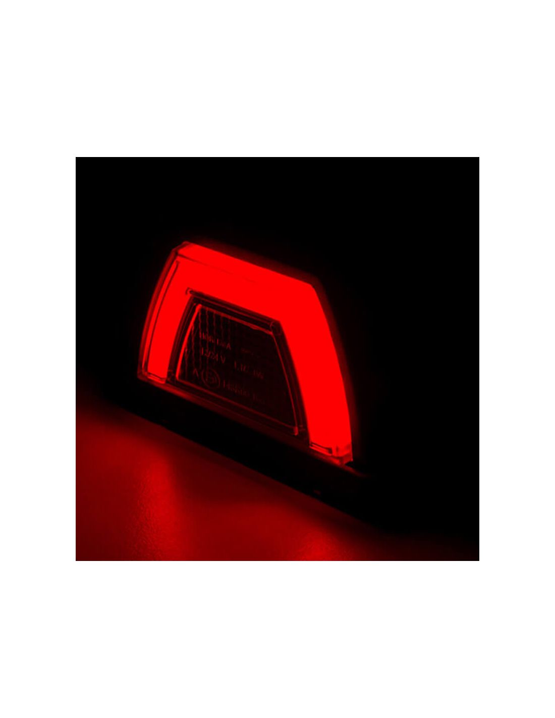LED-Leuchte in roter Farbe mit winkligem Neon-Effekt für Fahrerkabinen, genehmigt für die hintere Position R1. Modernes Design, IP68, wasser- und staubdicht, mit geringem Energieverbrauch und Kompatibilität 12V/24V. Ihr gleichmäßiges und blendfreies Licht verbessert die Sichtbarkeit und Sicherheit des Fahrzeugs.