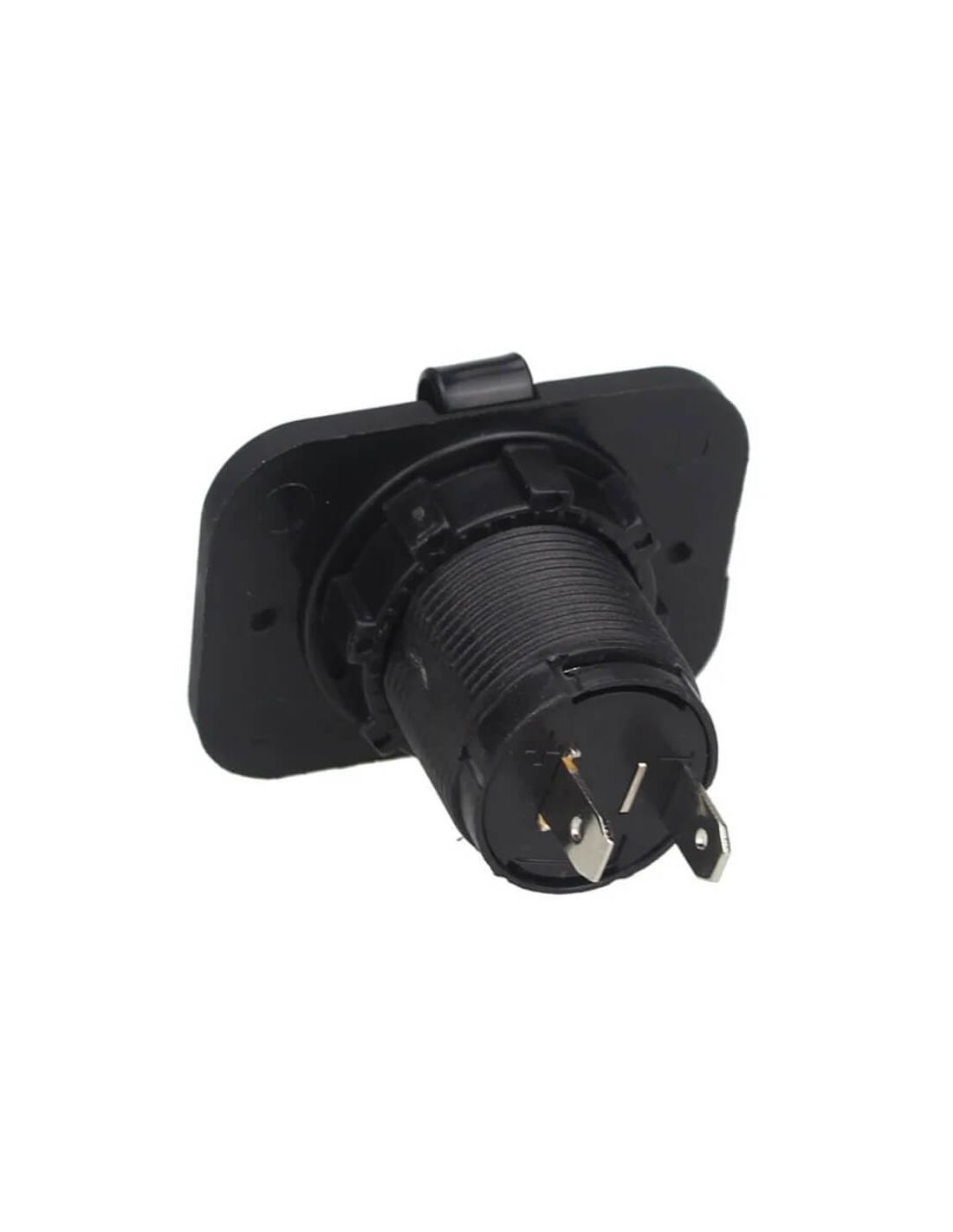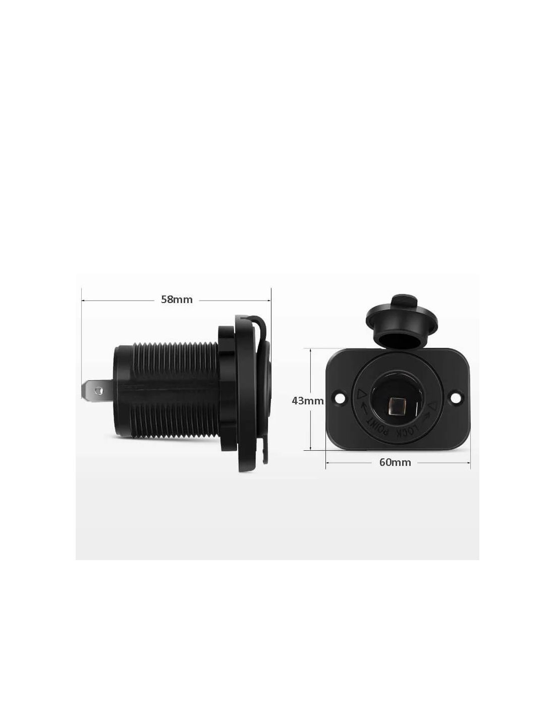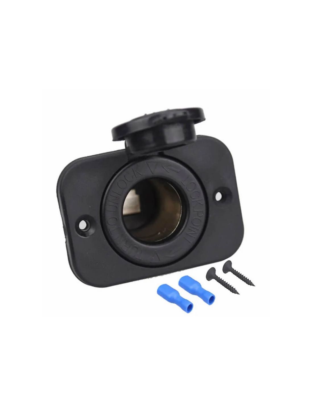 Verbindungseinheit für Zigarettenanzünder mit wasserdichtem Gummiverschluss, Halterung für die feste Installation, dieses Modell ist fest installiert und geeignet für 12V und 24V. Enthält Schrauben und Faston.