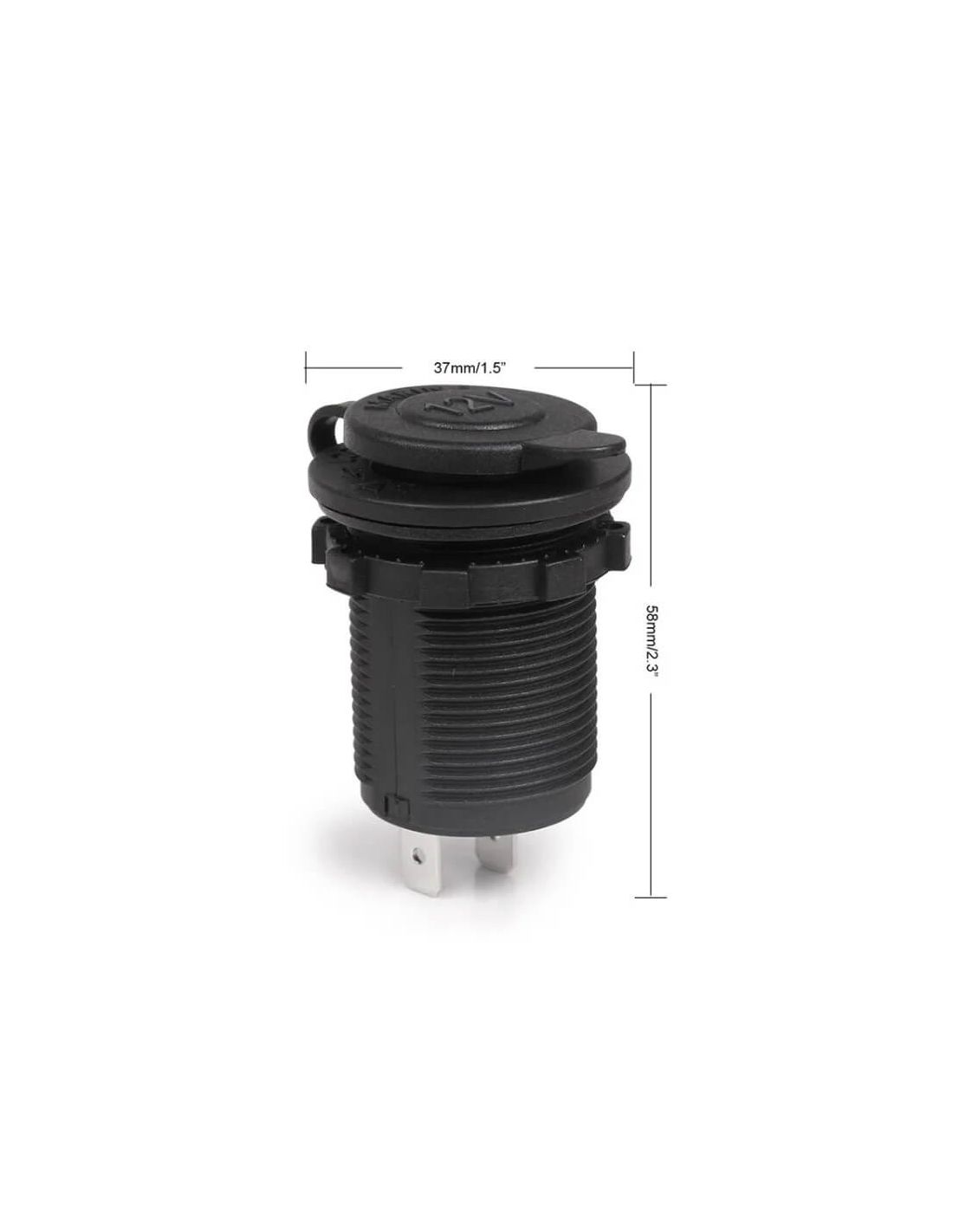 Steckdose für Zigarettenanzünder mit gummiertem Deckel für hermetischen Verschluss, dieses Modell der Steckdose kann fest installiert werden, enthält zwei Schrauben und zwei Faston für die Installation.