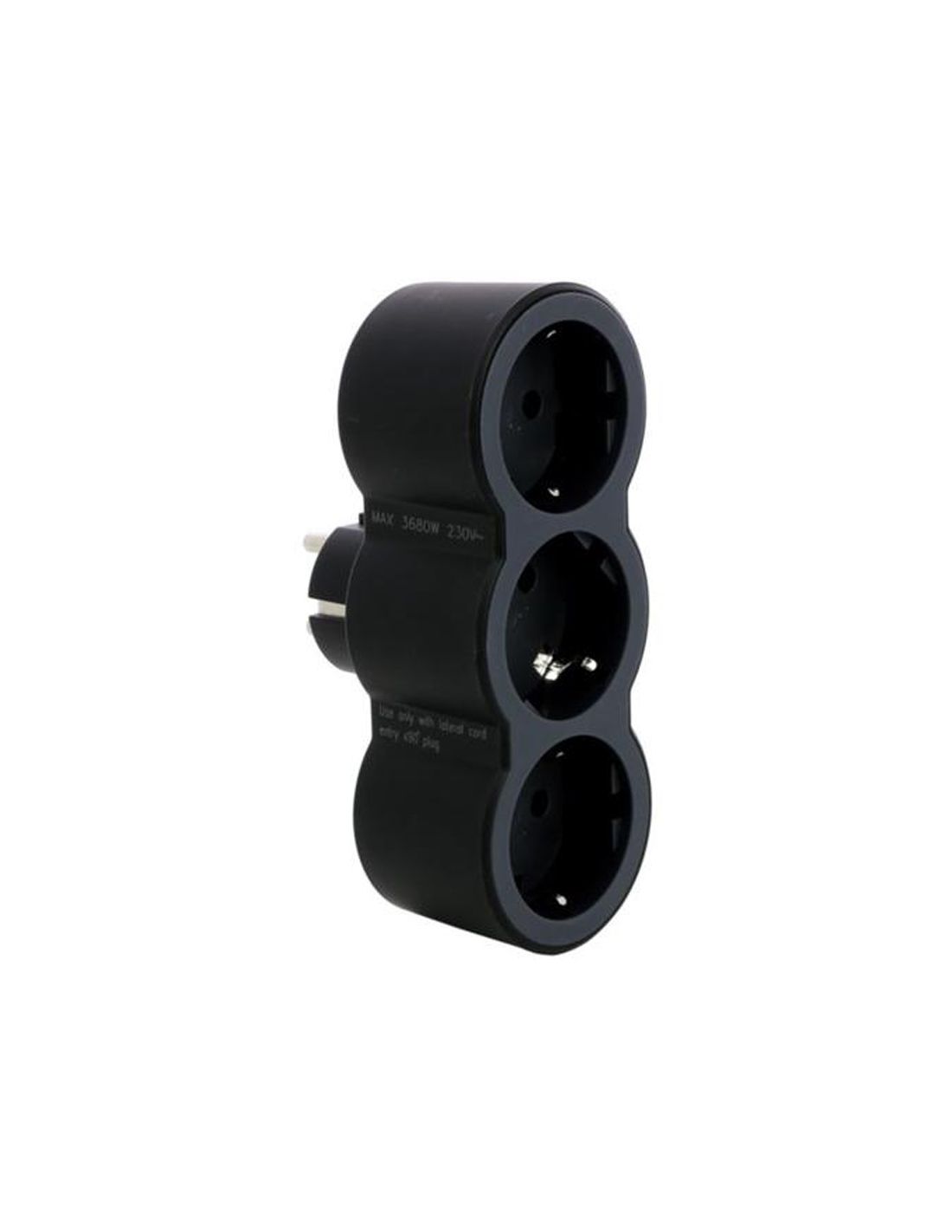El adaptador triple LEGRAND ref. 694519 en color negro y gris oscuro es la solución ideal para multiplicar las tomas de corriente en un espacio reducido. Equipado con 3 enchufes Schuko 2P+T (CEE 7/3) de entrada frontal, este adaptador está diseñado con una salida lateral inclinada a 90°, ideal para conectar transformadores sin bloquear otras tomas.