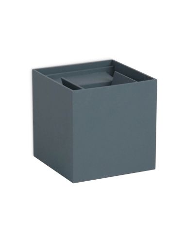 Dispone de driver integrado, y las dimensiones se pueden ver en una de las fotos: altura de 10Cm, una anchura de 10Cm, y sobresale de la pared 10Cm. Su estructura es de aluminio de color gris antracita con forma cuadrada moderna, ideal para fachadas exteriores con estilo moderno. Emite luz hacia arriba y hacia abajo, iluminando tanto la parte superior del muro y pared, y su parte inferior.