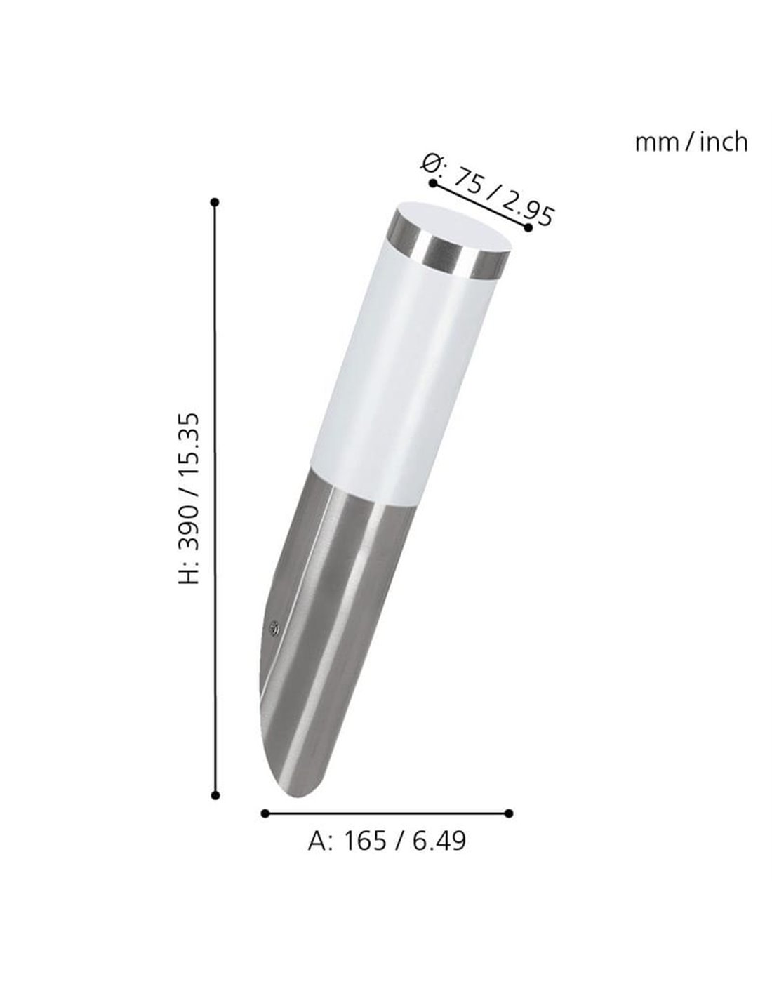 El aplique de pared exterior HELSINKI de Eglo es una luminaria elegante y funcional diseñada para iluminar espacios exteriores. Fabricado en acero inoxidable de color acero, presenta un diseño cilíndrico con una superficie luminosa de 360° en plástico blanco, proporcionando una iluminación uniforme. Este aplique es compatible con bombillas tipo A60 con casquillo E27 (no incluidas), lo que permite elegir la fuente de luz según las preferencias del usuario. Con un grado de protección IP55, es resistente al polvo y a las salpicaduras de agua, garantizando durabilidad en exteriores.