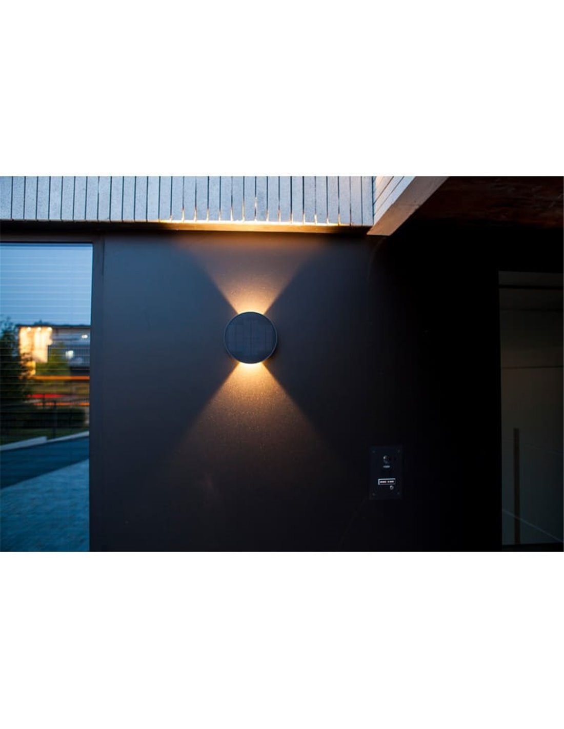El aplique de pared exterior BELKA de Lutec es una luminaria diseñada para ofrecer una iluminación versátil y eficiente en espacios exteriores. Su sistema híbrido permite funcionar tanto con energía solar como eléctrica, asegurando un rendimiento óptimo en diversas condiciones.