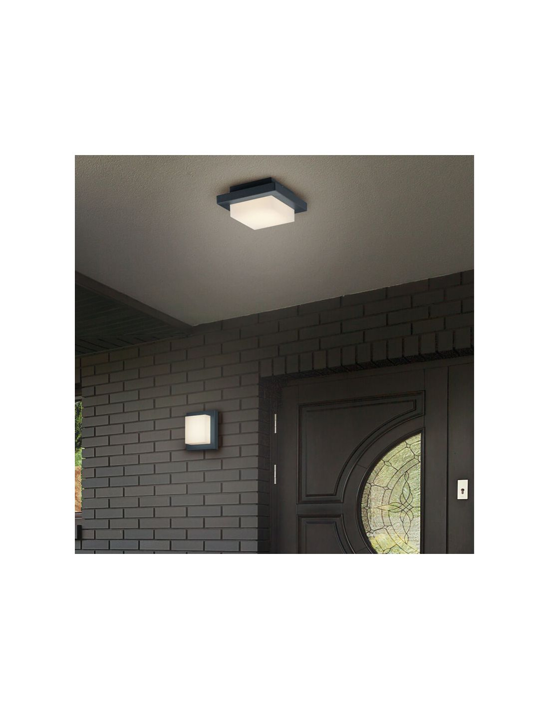 La lámpara exterior de pared Hondo está fabricada con un cuerpo de aluminio fundido en acabado antracita y un difusor de plástico blanco. Una de sus características destacadas es que permite tanto su montaje en techo, como en pared. Se trata de una de las propuestas más versátiles de Trio Lighting para iluminación exterior.