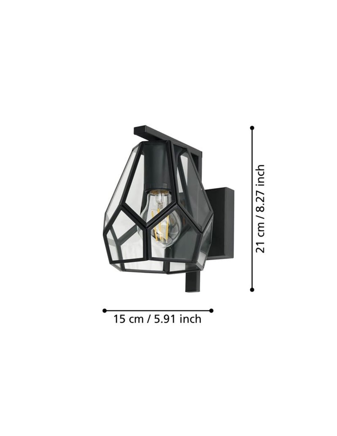 Lámpara Colgante MARDYKE en forma de rombo negro y cristal, E27