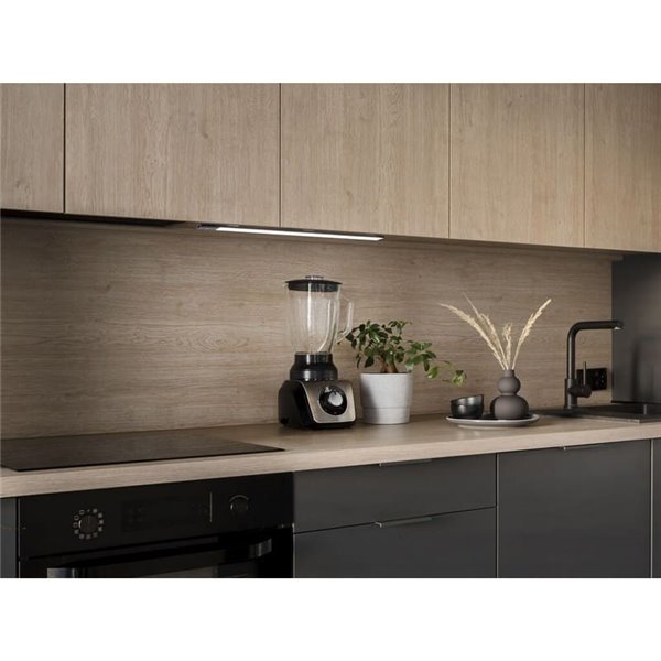 El Aplique LED bajo mueble KAUS BLACK de Emuca es la solución ideal para quienes buscan una iluminación funcional y elegante en sus espacios. Su diseño extrafino en color negro y tecnología avanzada lo convierten en una opción destacada para cocinas, armarios y zonas de paso.