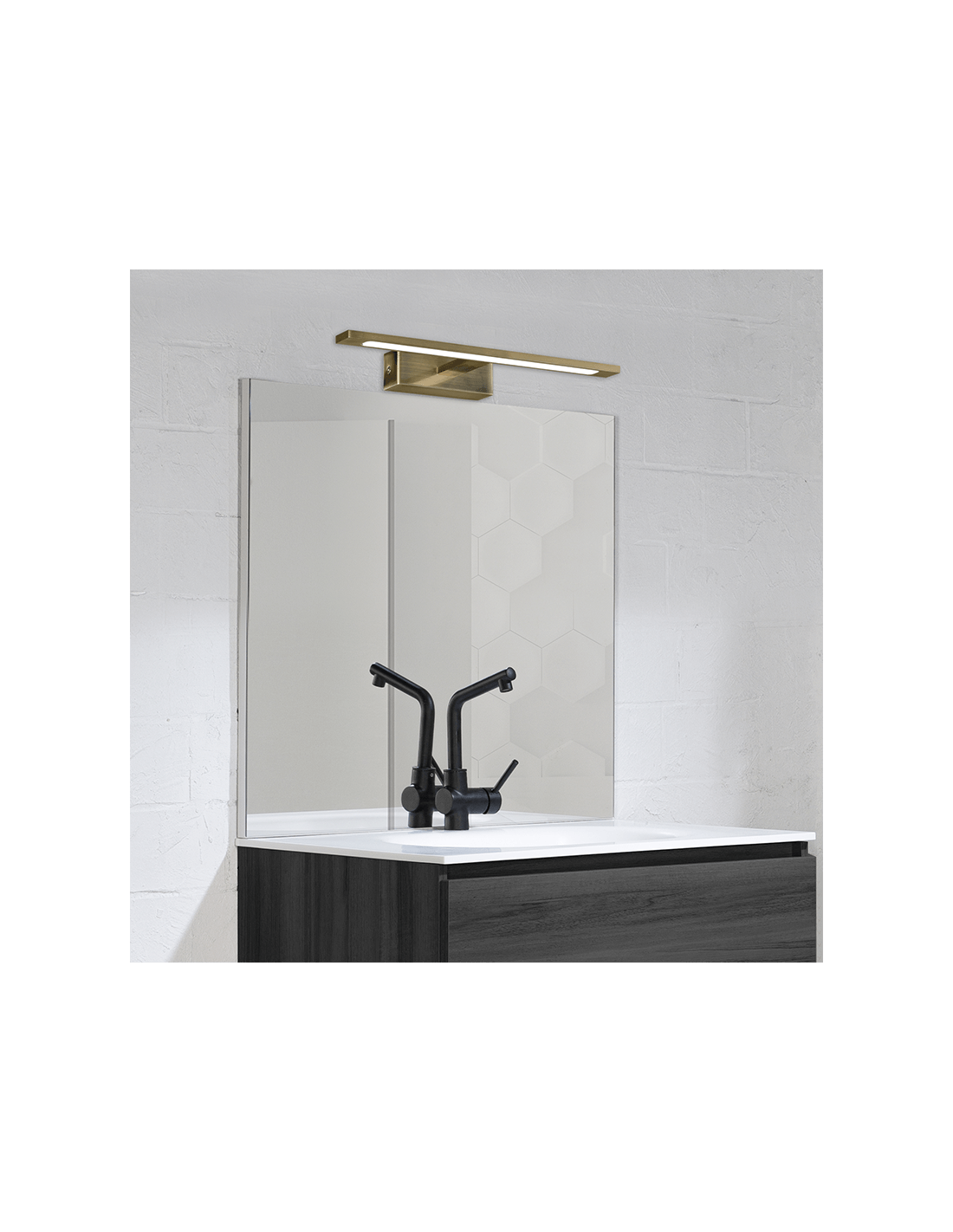 El aplique LED MENORCA en acabado cuero de 450mm está diseñado para ofrecer una iluminación óptima en baños, especialmente en la zona del espejo. Su formato lineal proporciona una luz homogénea y sin sombras, ideal para tareas cotidianas como el aseo personal o maquillaje.