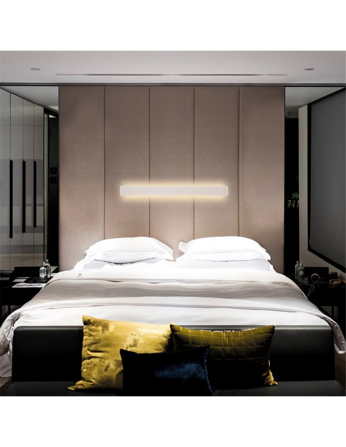 Con una longitud de 90cm, este aplique cuenta con una potencia de 30W y un flujo luminoso de 1700 lúmenes, ofreciendo una luz cálida de 3000K ideal para cualquier estancia. Además, incorpora un tubo T5 UV-C germicida que ayuda a la desinfección del aire, eliminando bacterias y virus, y creando un ambiente más saludable.