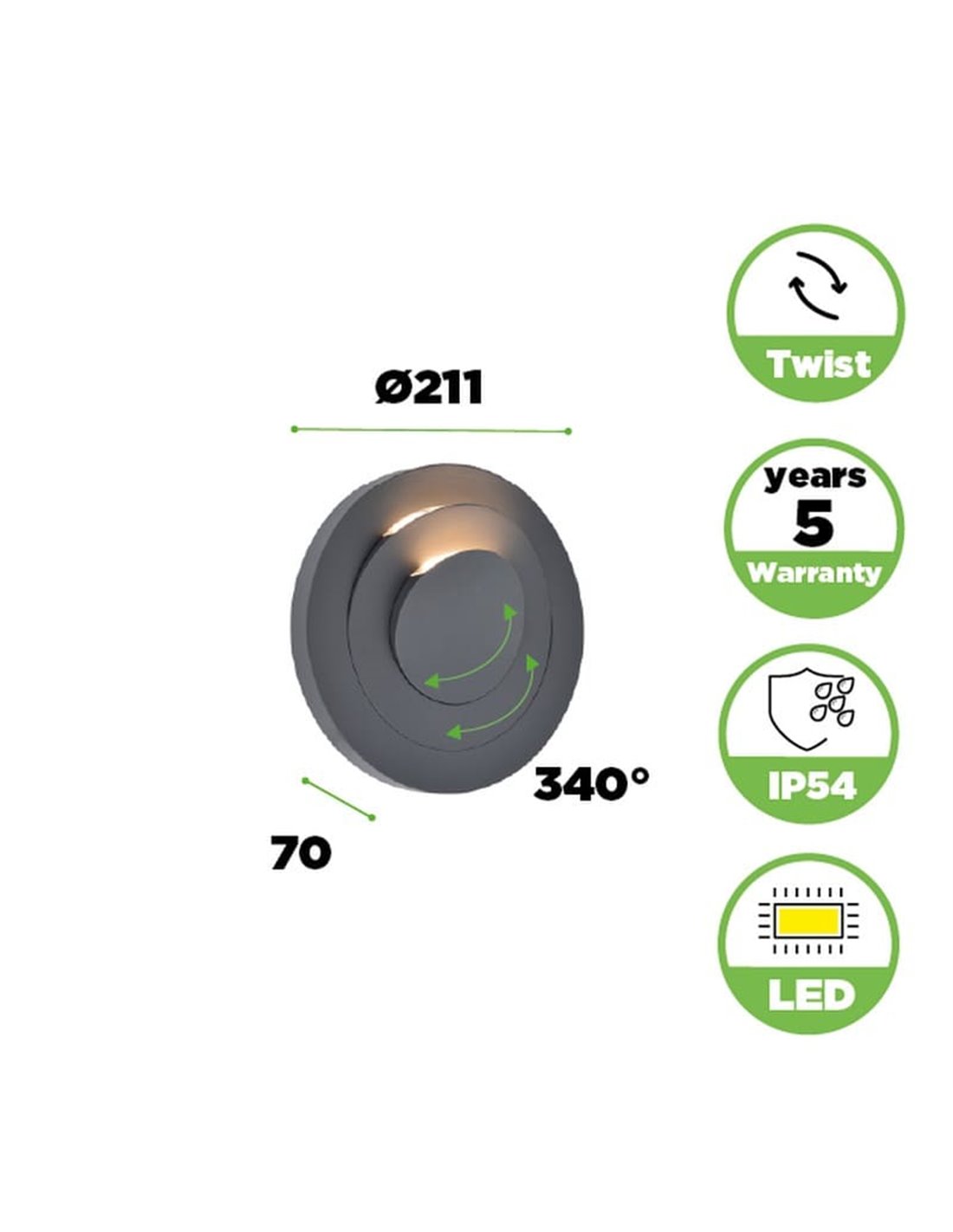 El aplique de pared exterior MOOV de Lutec destaca por su diseño contemporáneo y su funcionalidad adaptable. Equipado con dos cabezales ajustables y un haz de luz fijo, permite dirigir la iluminación según las necesidades específicas de su espacio exterior, ya sea para resaltar elementos arquitectónicos o para proporcionar luz ambiental.