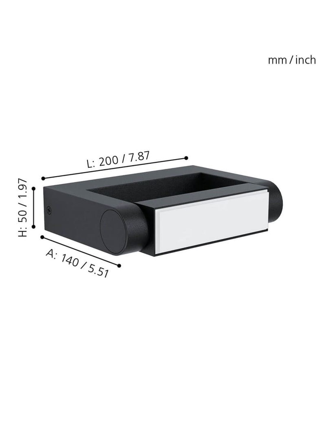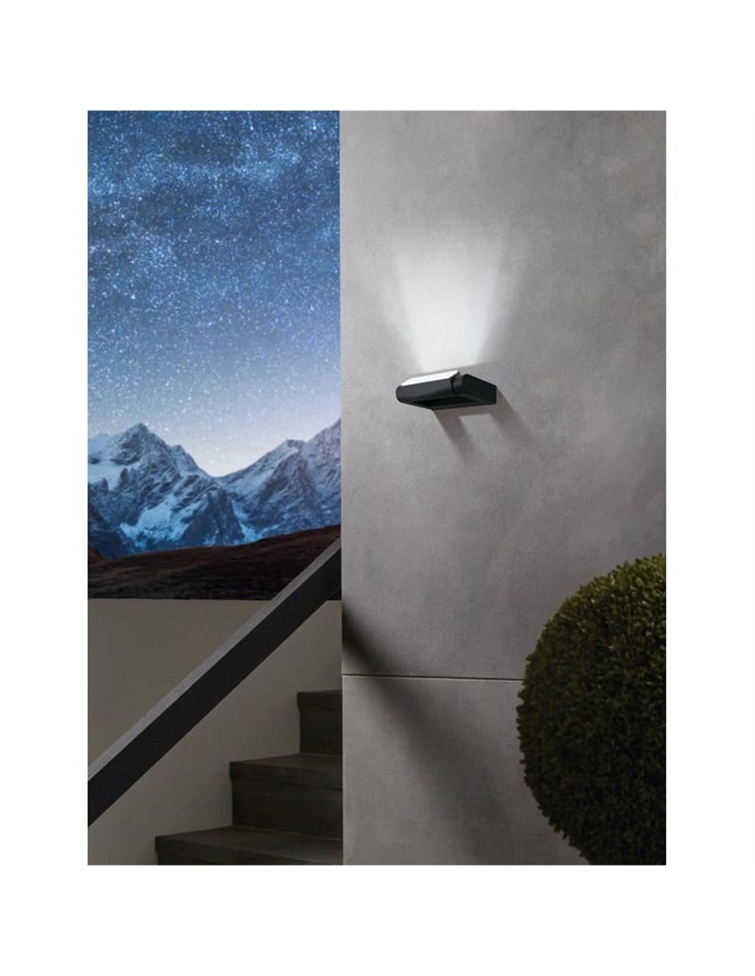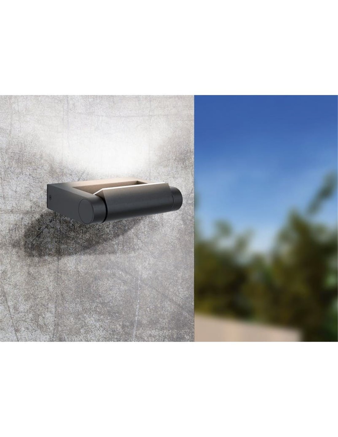 El aplique de pared LED Brianza de Eglo es una solución de iluminación exterior que destaca por su diseño moderno y funcionalidad. Fabricado en aluminio fundido de color negro mate, este aplique cuenta con un cabezal giratorio que permite orientar la luz según tus necesidades, proporcionando una iluminación personalizada y eficiente.