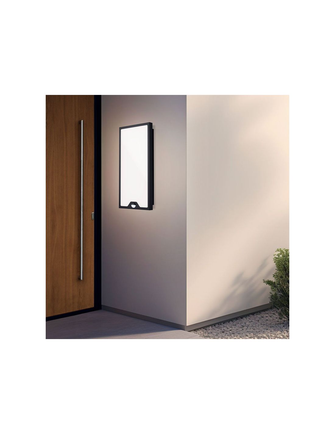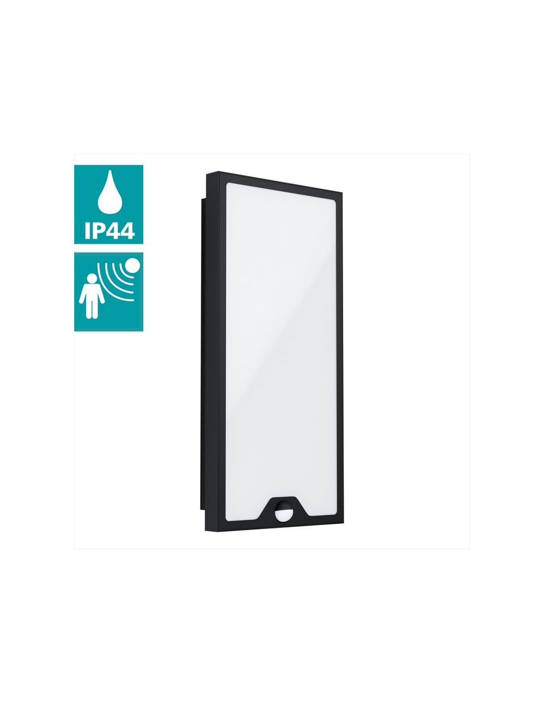 Aplique LED de pared exterior Eglo CASAZZA con diseño moderno en color negro y sensor de movimiento integrado para una iluminación automática y eficiente. Incorpora LED integrado con 2350 lúmenes y luz blanco cálido 3000K, ideal para entradas, fachadas y zonas de paso exteriores.