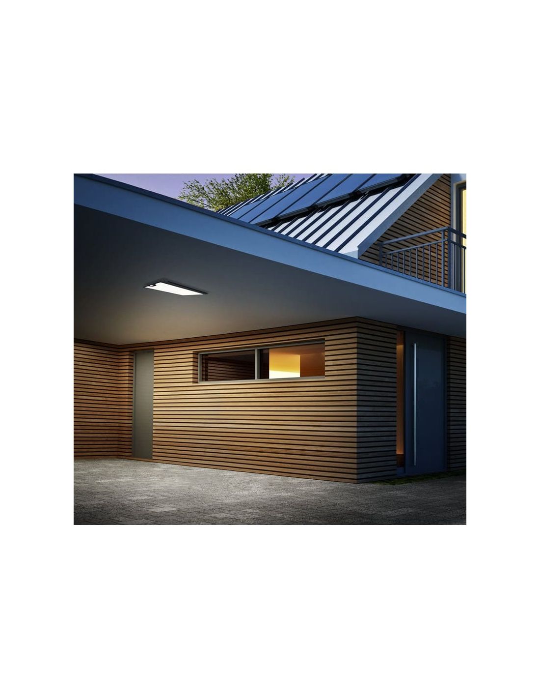El módulo LED integrado proporciona un flujo luminoso de 2350 lúmenes con una temperatura de color de 3000K, generando una luz blanca cálida agradable que ilumina de forma uniforme sin resultar deslumbrante. Perfecto para crear un entorno acogedor alrededor de la vivienda.