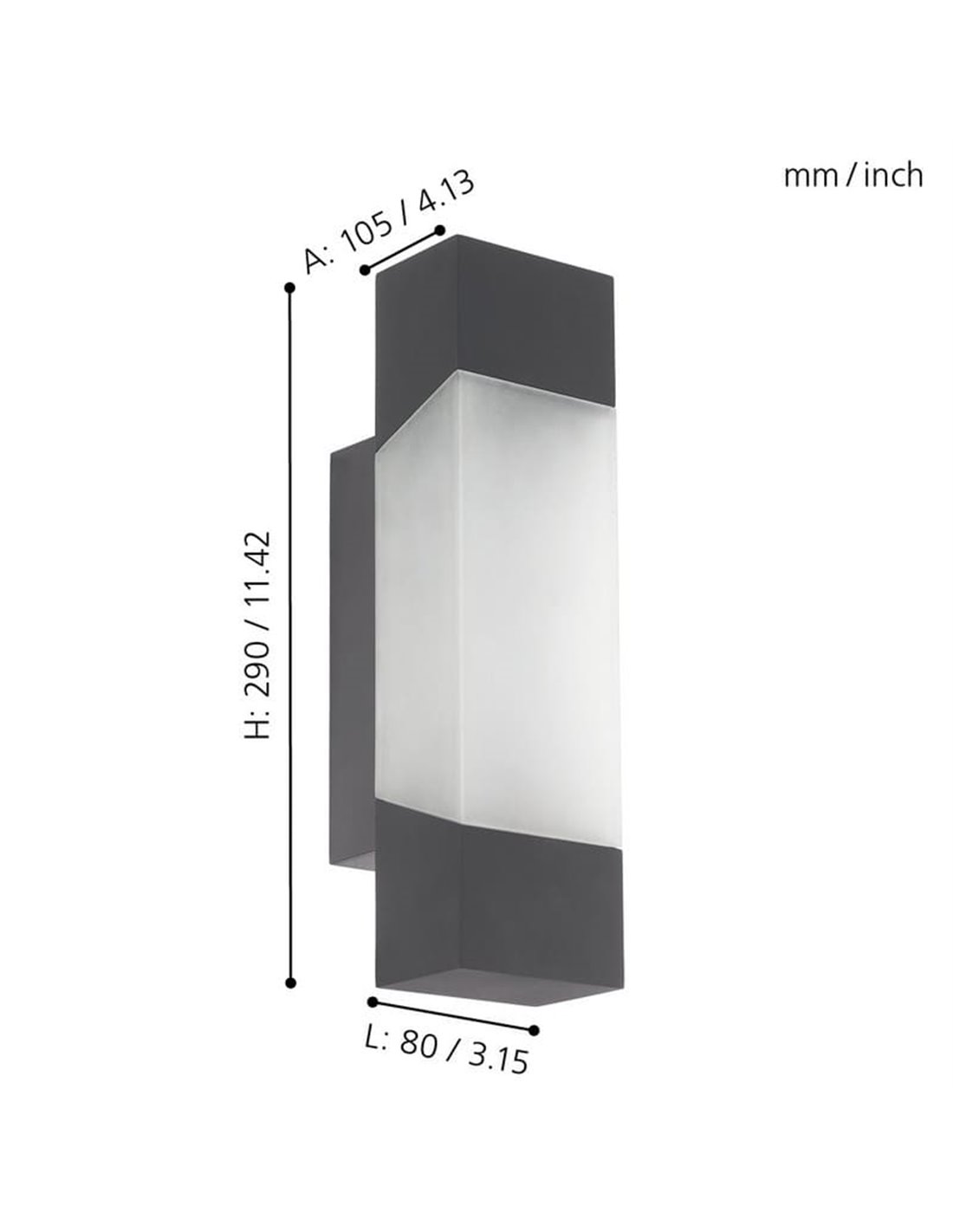 Aplique de pared exterior LED CHINOA de acero negro 3000K 1300Lm