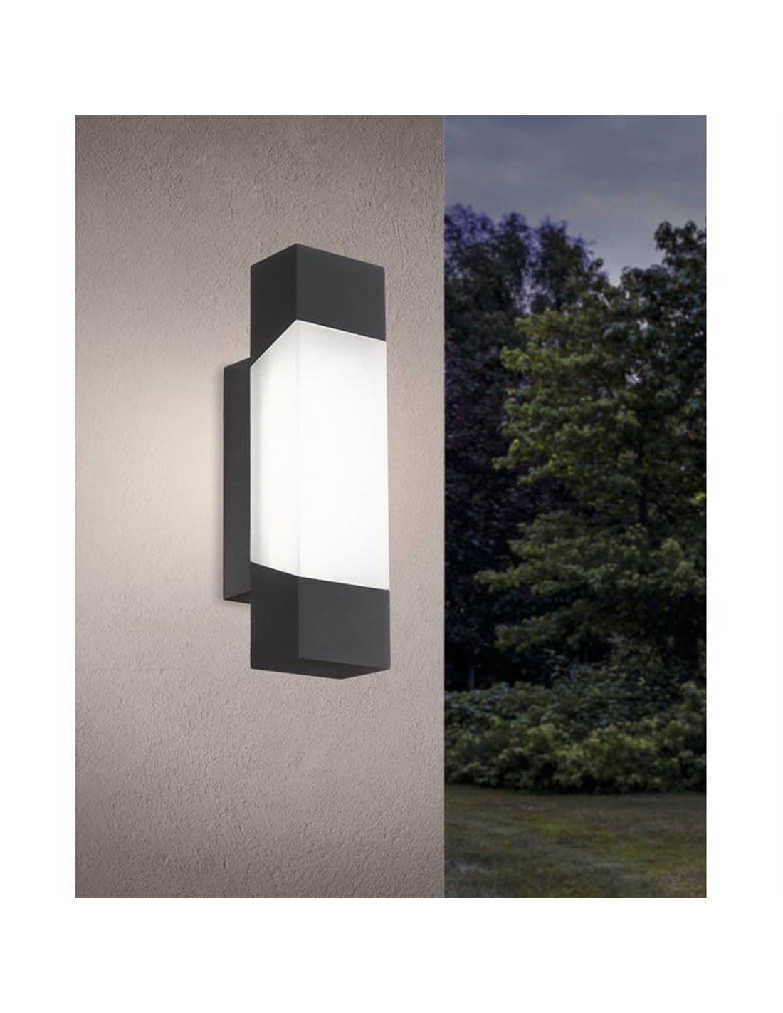 Aplique de pared exterior FARINDOLA, acero negro y plástico blanco, E27 (no incl.)