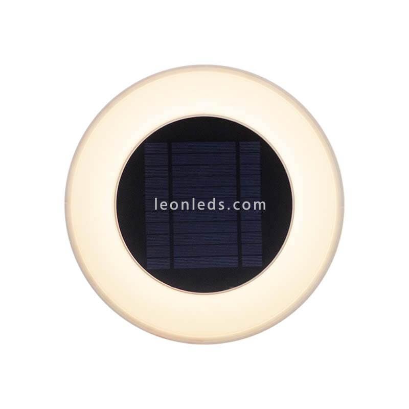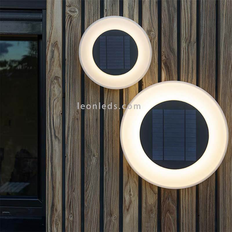 El aplique de pared circular Wally es una de las últimas novedades en iluminación solar de New Garden. Se trata de un aplique con forma de disco fabricado con materiales reciclados en PVC y metal que incorpora un aro de luz exterior y un panel solar en el círculo interior.