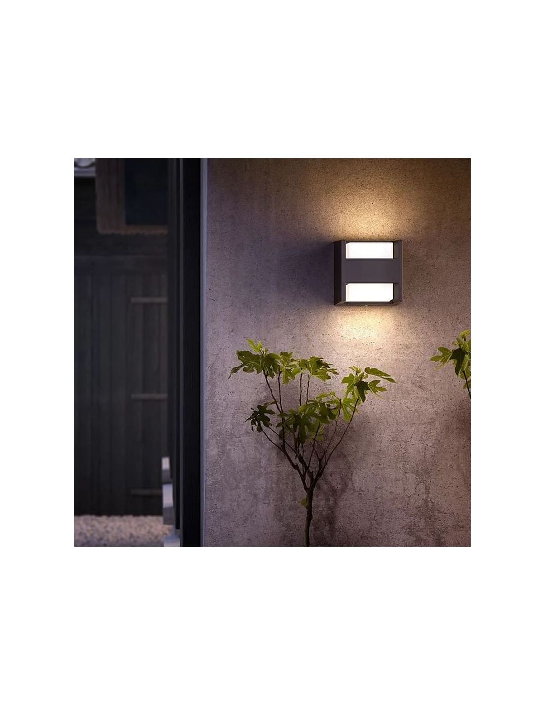 Este aplique LED está especialmente diseñado para exteriores, con una clasificación IP44 que lo hace resistente al agua y adecuado para todo tipo de condiciones climáticas. Su efecto de iluminación bidireccional crea el ambiente perfecto en tu jardín o terraza, añadiendo un toque de calidez y elegancia a tu espacio al aire libre.