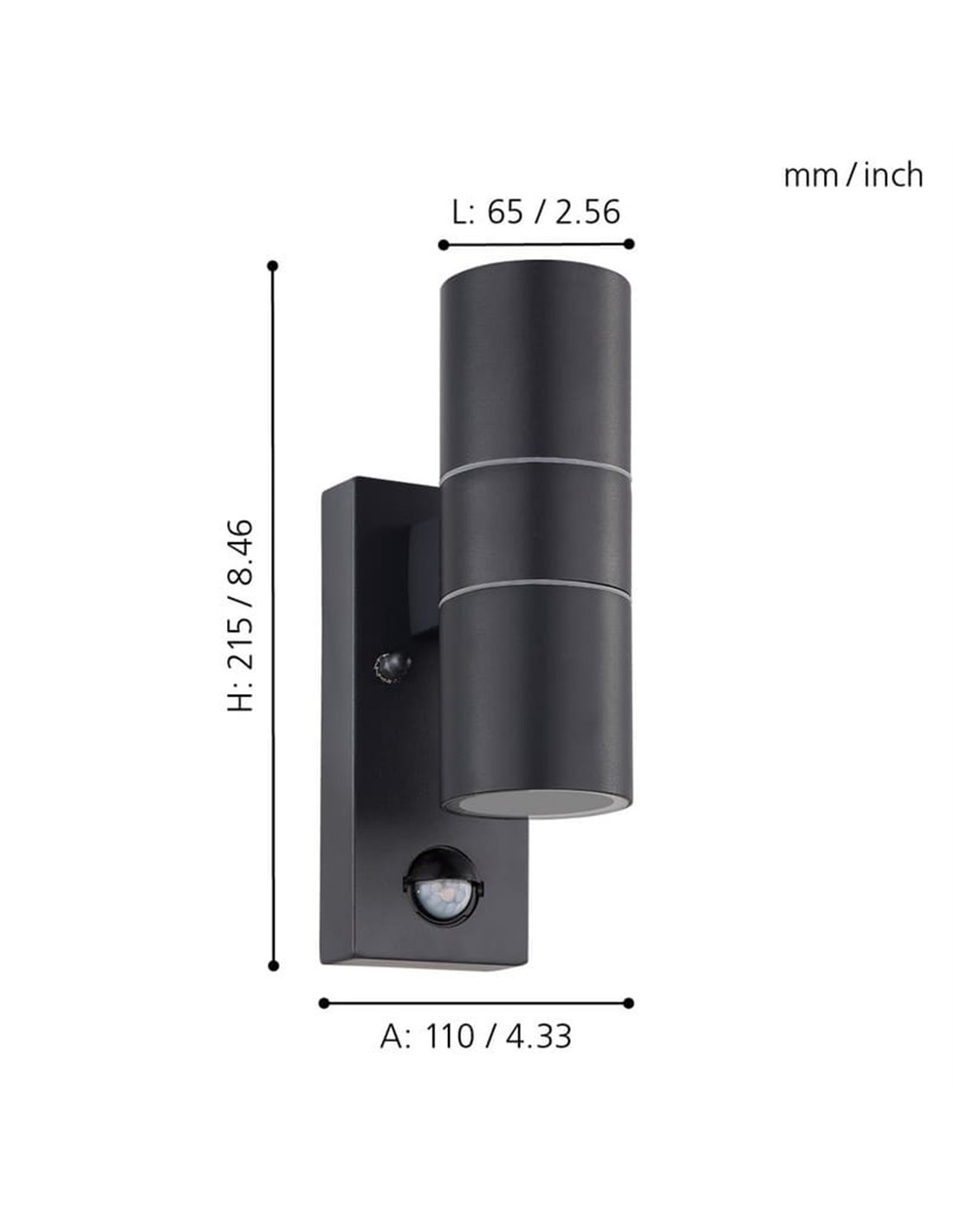 Aplique LED de pared con sensor de movimiento RIGA 5, negro, 2,8W 250Lm 3000K, IP44