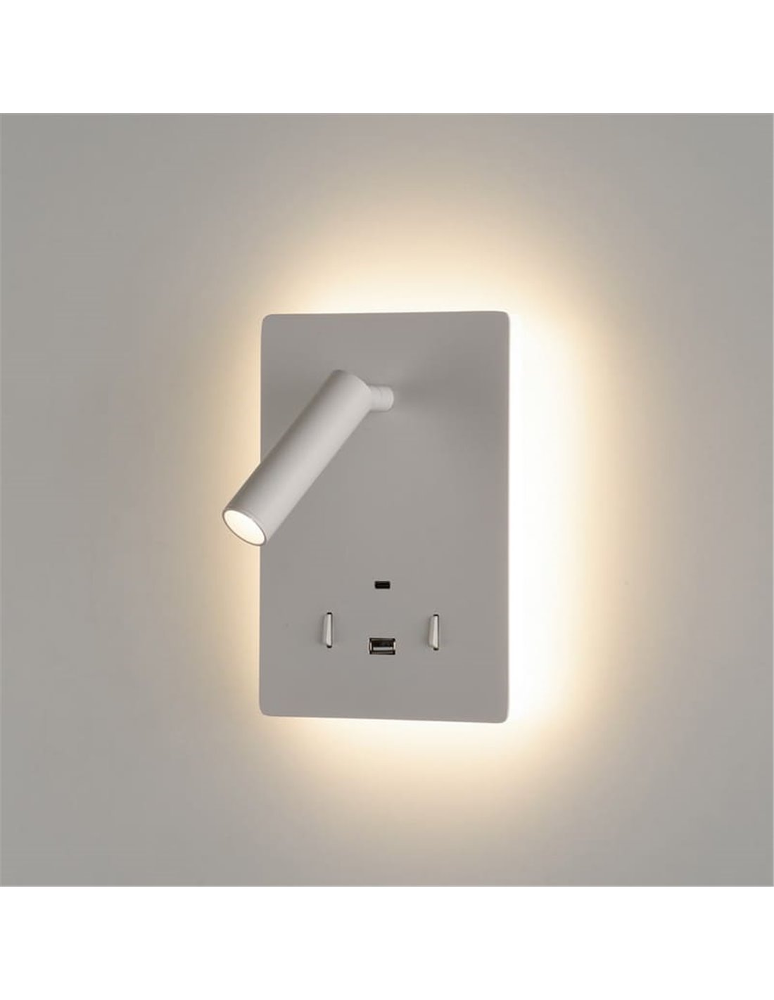 Aplique LED orientable MANAT con 2 Interruptores y USB y USBC, 12W 3000K 970lm + 3W 3000K 285lm