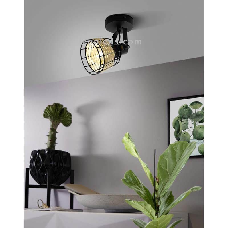 Aplique de techo y pared con 1 pantalla de rattan amarillo-marrón y acero negro de la colección Anwick 1 de Eglo Iluminación. Es un aplique natural de estilo vintage y rústico perfecto para cualquier estancia que requiera iluminación y decoración a la vez con toques naturales. En su pantalla de madera predominan dos colores, el marrón claro envejecido gracias al rattan que lo integra, y toques negros de acero metálico. Necesita de 1 bombilla con casquillo E27 (no incluida). Recomendamos el uso de unas bombillas LED de filamento tipo Globo para realzar su estilo vintage y retro ya que la misma quedará ligeramente visible tras su pantalla natural. Preferiblemente elegir un tono cálido como el 3.000k que potenciará ese efecto vintage o retro buscado. La potencia recomendable es de 10 a 17W en función de las dimensiones de la estancia que necesitemos iluminar.