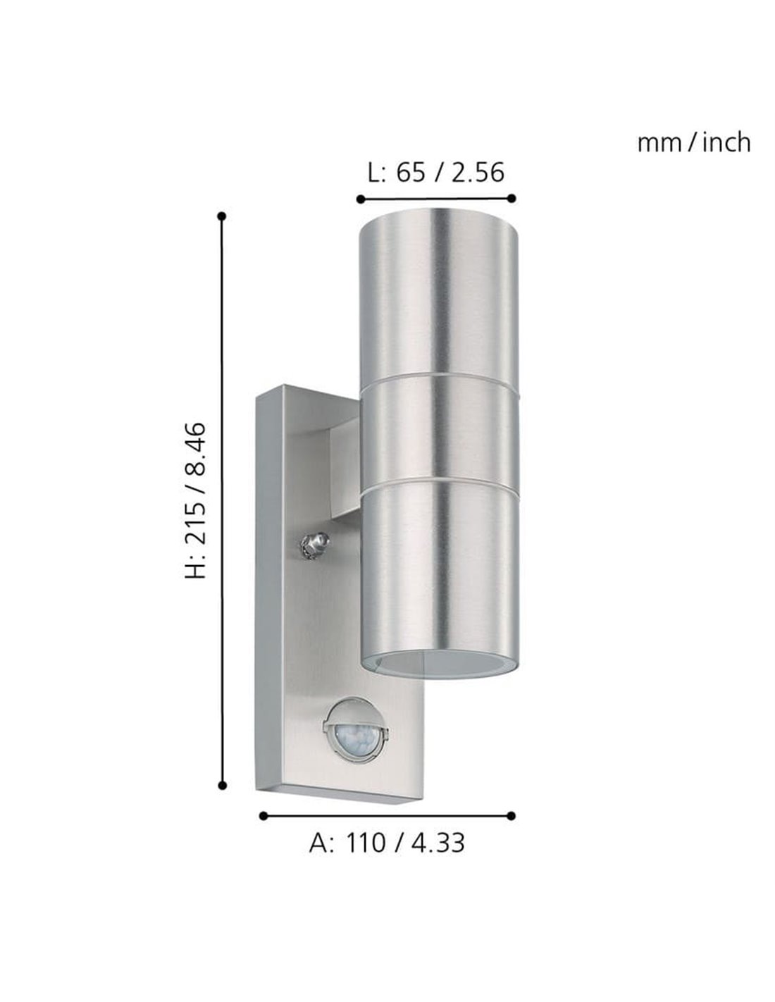Aplique LED satinado RIGA 5, doble luz y sensor de movimiento, 2x2,8W 500Lm 3000K, IP44 - Eglo Iluminación