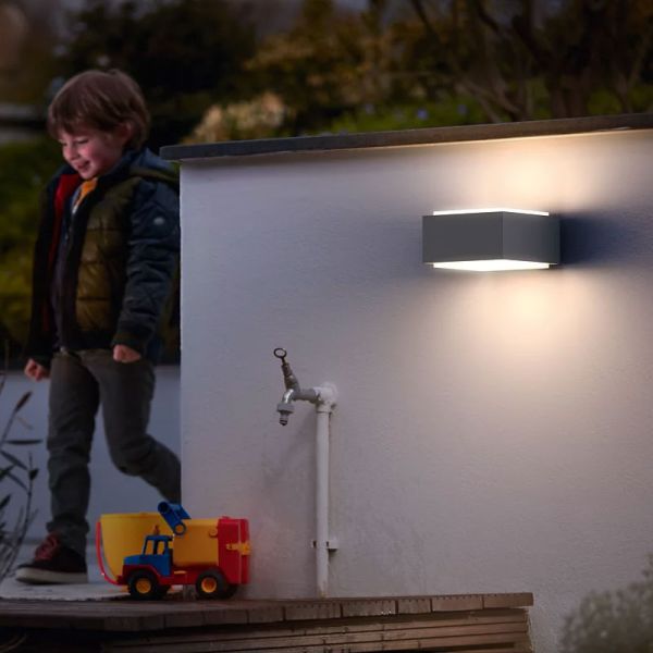 Su diseño moderno en color gris se integra perfectamente en cualquier estilo arquitectónico, añadiendo un toque de sofisticación y funcionalidad. Además, su capacidad de ser estanco al agua asegura que el aplique funcione de manera óptima, independientemente de las condiciones climáticas.