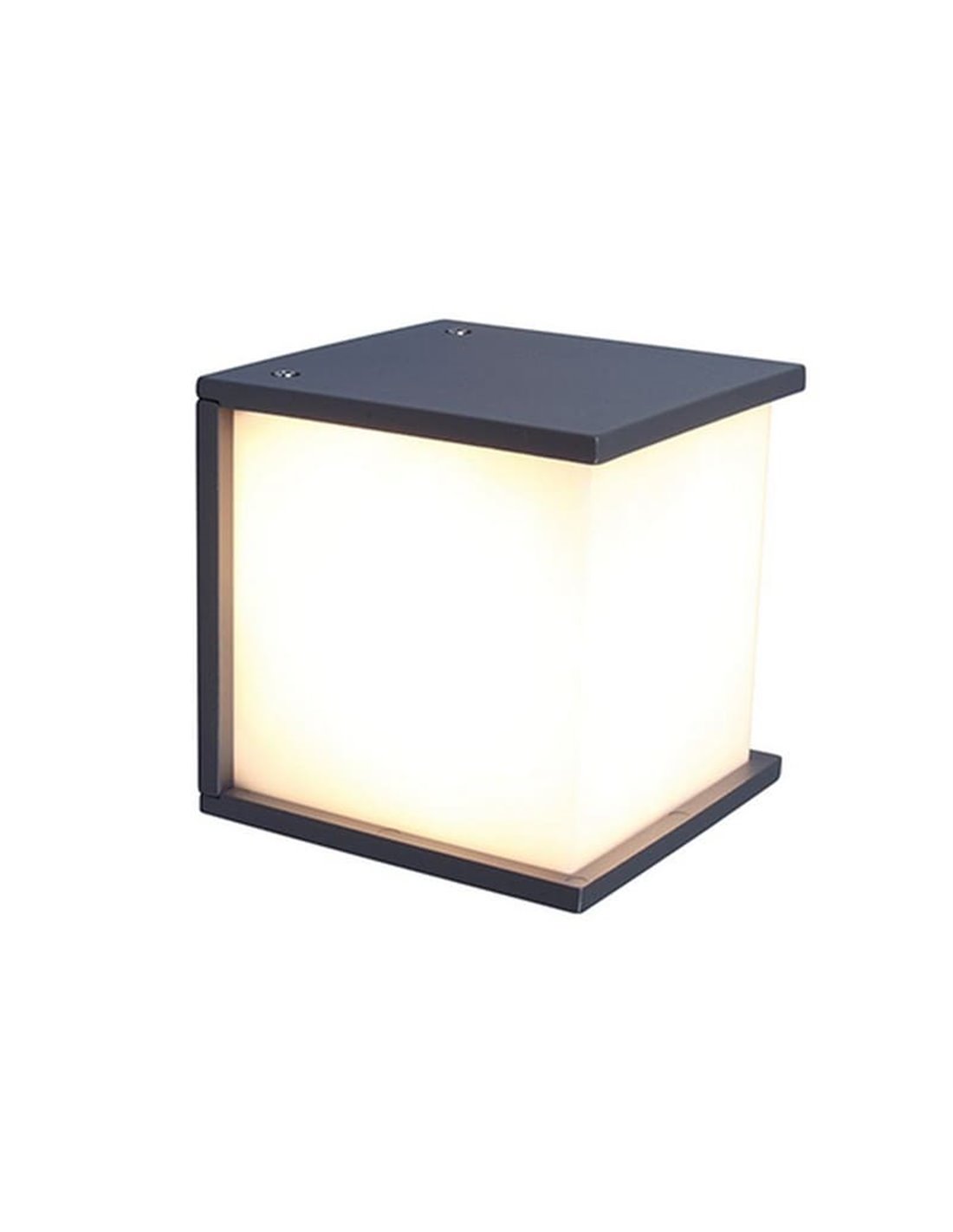 Box Cube es un aplique de pared, diseñado con aluminio de alta calidad y difusor de PC opal en acabado gris oscuro, con el que podrás iluminar de forma homogénea y sin sombras tus entradas y jardines. Además, de forma eficiente y contemporánea (IP44).
