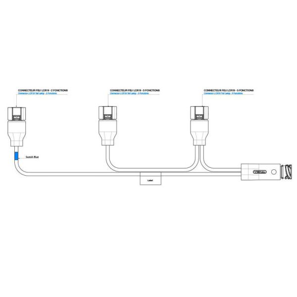 El arnés Vignal FCA es una solución completa, profesional y de alta resistencia para conectar hasta 3 pilotos traseros LED LCR19 en un mismo lateral del vehículo, específicamente diseñado para remolques y semirremolques Schmitz.