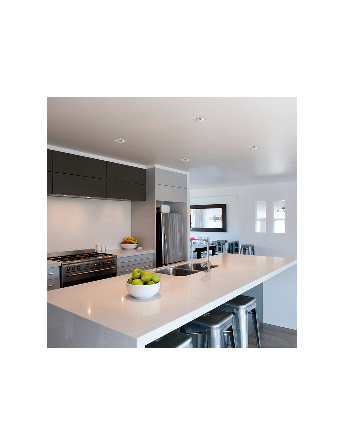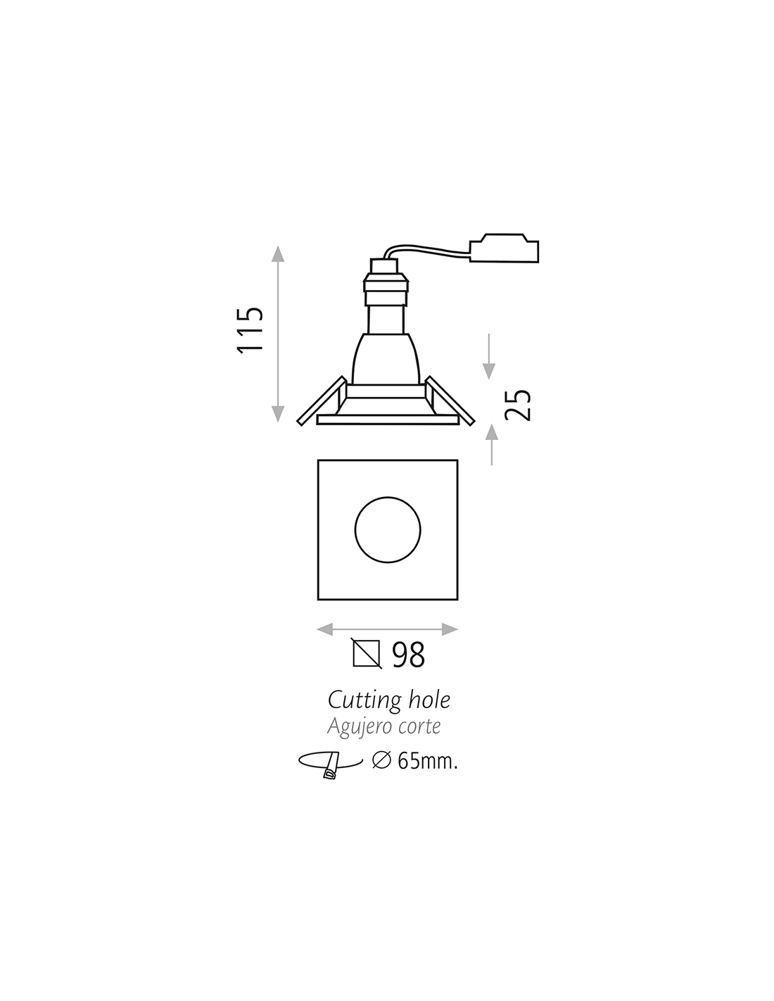 El plafón Doro empotrable es perfecto para la iluminación acogedora y elegante de interiores. Cuenta con unas medidas de 98 mm de ancho, 98 mm de longitud y una profundidad de 25 mm (115 mm total).