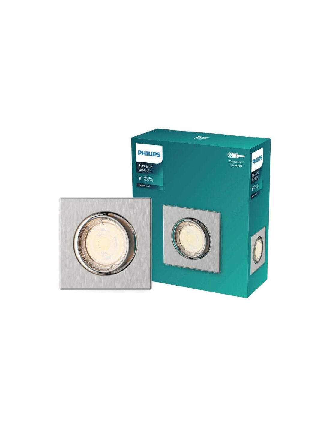El aro empotrable cuadrado PERIDOT de Philips en acabado níquel combina diseño funcional y montaje rápido gracias a sus clips integrados, sin necesidad de tornillos. Fabricado en metal resistente, ofrece una estética moderna y limpia ideal para baños, cocinas o salones.