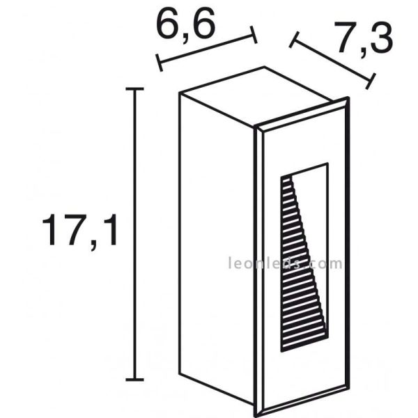 El orificio de corte es rectangular de 6,6 X 17,9cm, una anchura de 6,6Cm, una altura de 17,1 y una profundidad total de 7,3Cm (Consultar Dimensiones en Foto).