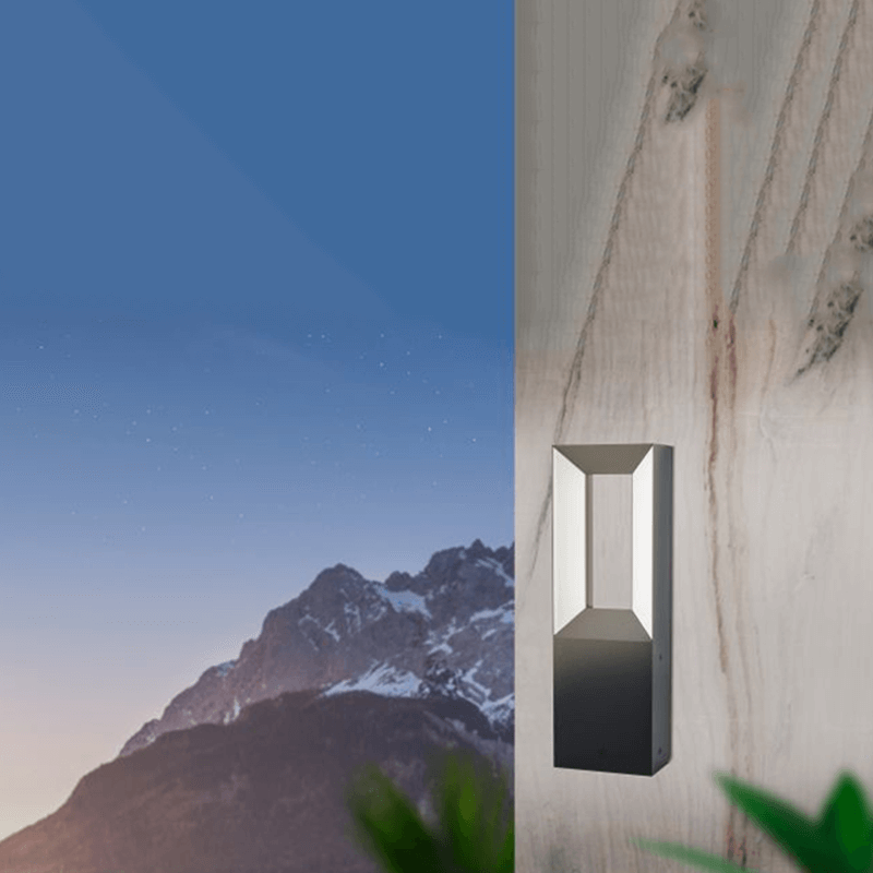 Los LED integrados detrás de las superficies luminosas encajadas en diagonal dotan de una luz blanca cálida y agradable. Esta lámpara de exteriores es resistente a las salpicaduras y al polvo (IP54). Incluye una garantía de 5 años con una vida útil de 25000 horas.