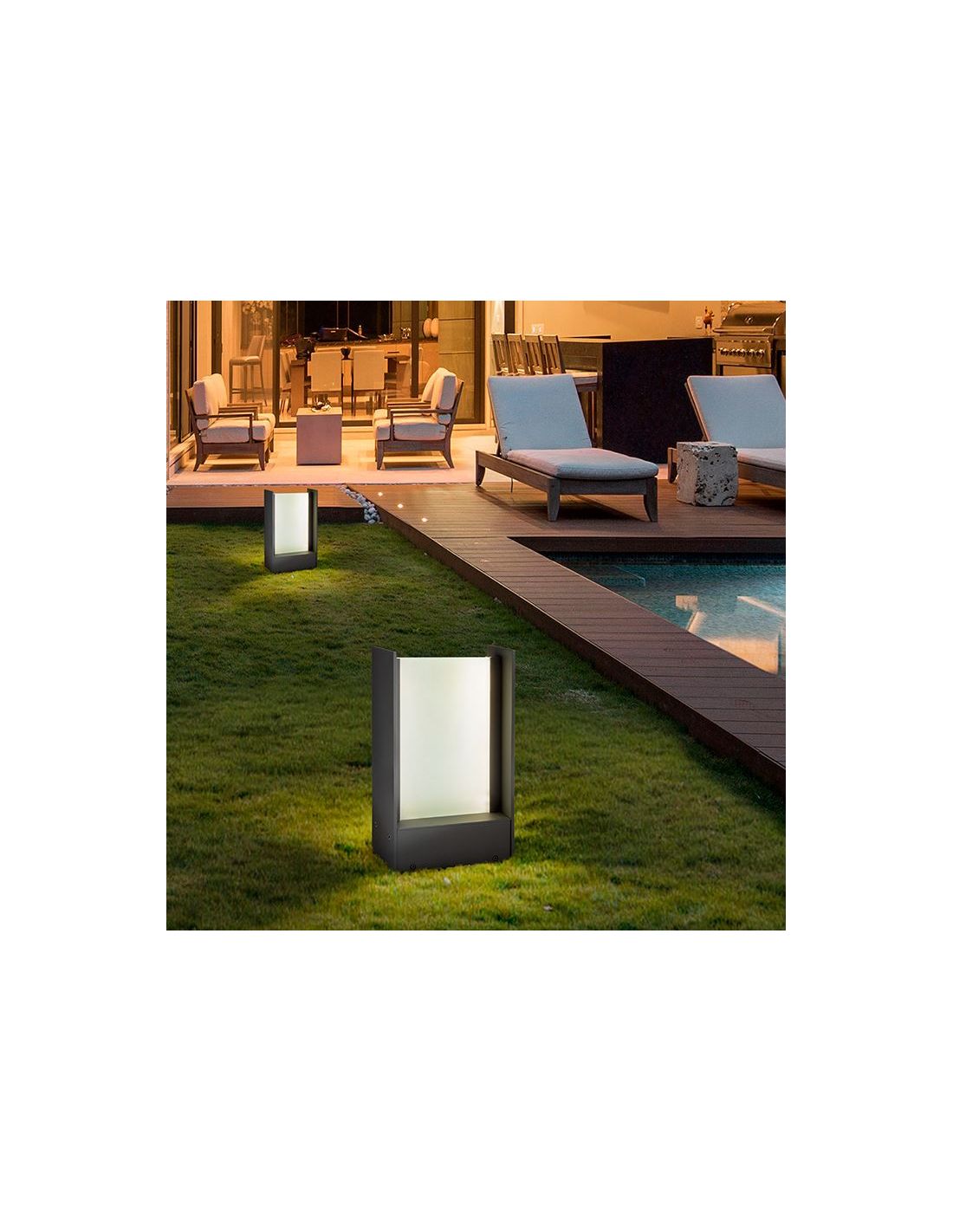 La baliza exterior MATIA ofrece una solución de iluminación moderna y práctica para tu espacio al aire libre. Fabricada en aluminio fundido con acabado gris oscuro y difusor de cristal mate de 12 mm, proporciona un diseño estilizado y resistente a la intemperie.