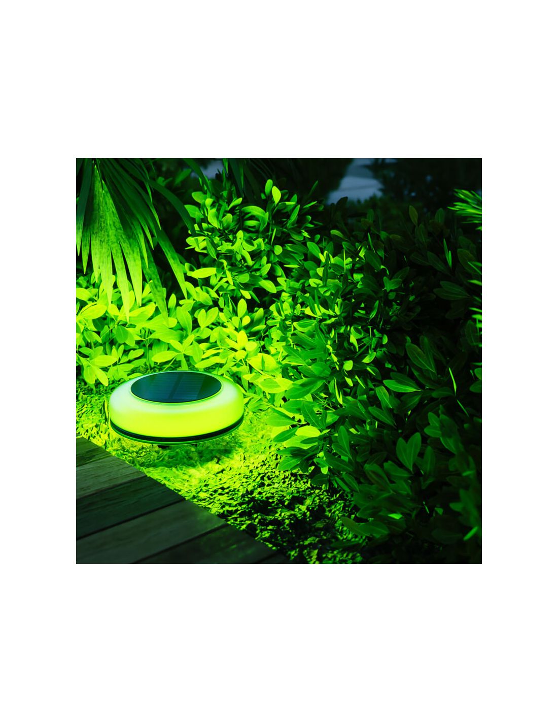 La baliza solar LED con pincho 2700K/RGB y 3 modos es ideal para iluminar y decorar jardines, caminos, terrazas o tiestos sin necesidad de cables.