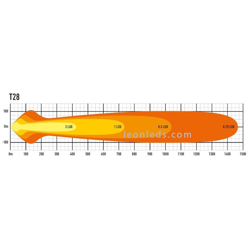 Barra de LED para vehículos 4X4, Camiones, Automóviles de la marca Lazer. El modelo T28 Evolution consigue ofrecernos 0.25Lx a mas de 1.470m de alcance. Barra LED no Homologada.