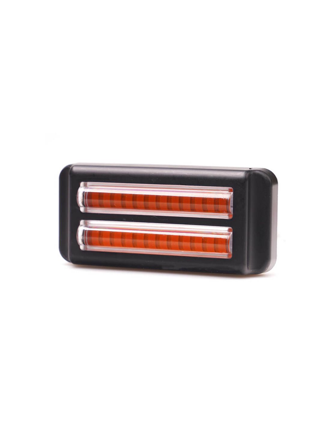 Barra LED con doble linea mini estroboscópica ámbar de doble flash XA1, 12/24V, homologación ECE, resistente IP6K9K/IP68 y sincronizable en modo MASTER/SLAVE. Ideal para vehículos de emergencia, obra y maquinaria. 5 Programas de luz, incluye cable MASTER para que todas funcionen en la misma frecuencia.