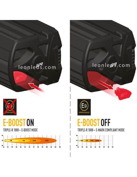 Barra LED Triple R 1000 Gen 2 de la marca Lazer con luz de posición, esta nueva Barra LED cuenta con la tecnología E-Boost la cual permite ofrecer a esta Barra LED una potencia de 88W, una intensidad de luz de 9.240Lm y 0.25Lx a mas de 1220 metros de distancia (Con el conector y no cumpliría con la E9), si retiramos este conector la potencia que ofrece esta Barra LED es de 17,6W, una intensidad de luz de 1.848Lm y 0.25Lx a mas de 540 metros. Esta disponible en color blanco y en color negro, selecciona la que mas te guste. Puedes complementarla con los accesorios CAN interface y CAN contactless.