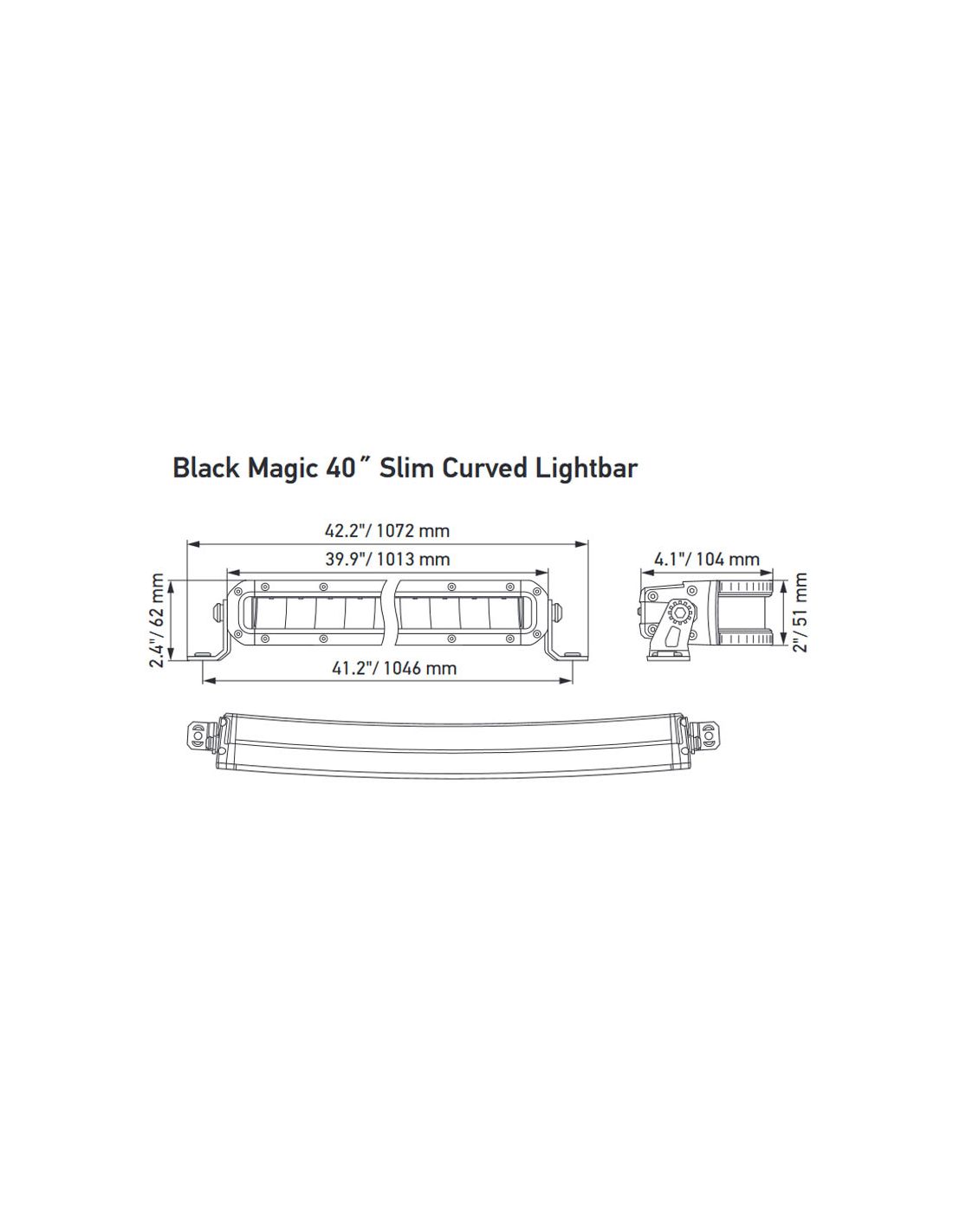 Barra LED curva Slim de 40” de la serie Black Magic de Hella, esta Barra LED cuenta con una línea de 42 LEDs de alta potencia que ofrece una intensidad lumínica de 6.800Lm con un consumo de 102W, está Homologada con ECE-E149 y EMC R10 y CEPE 40. Son Válidas para 12V y para 24V y el haz de luz es Combo, combina luz de largo alcance con luz de trabajo.