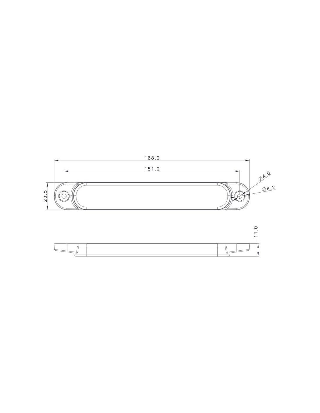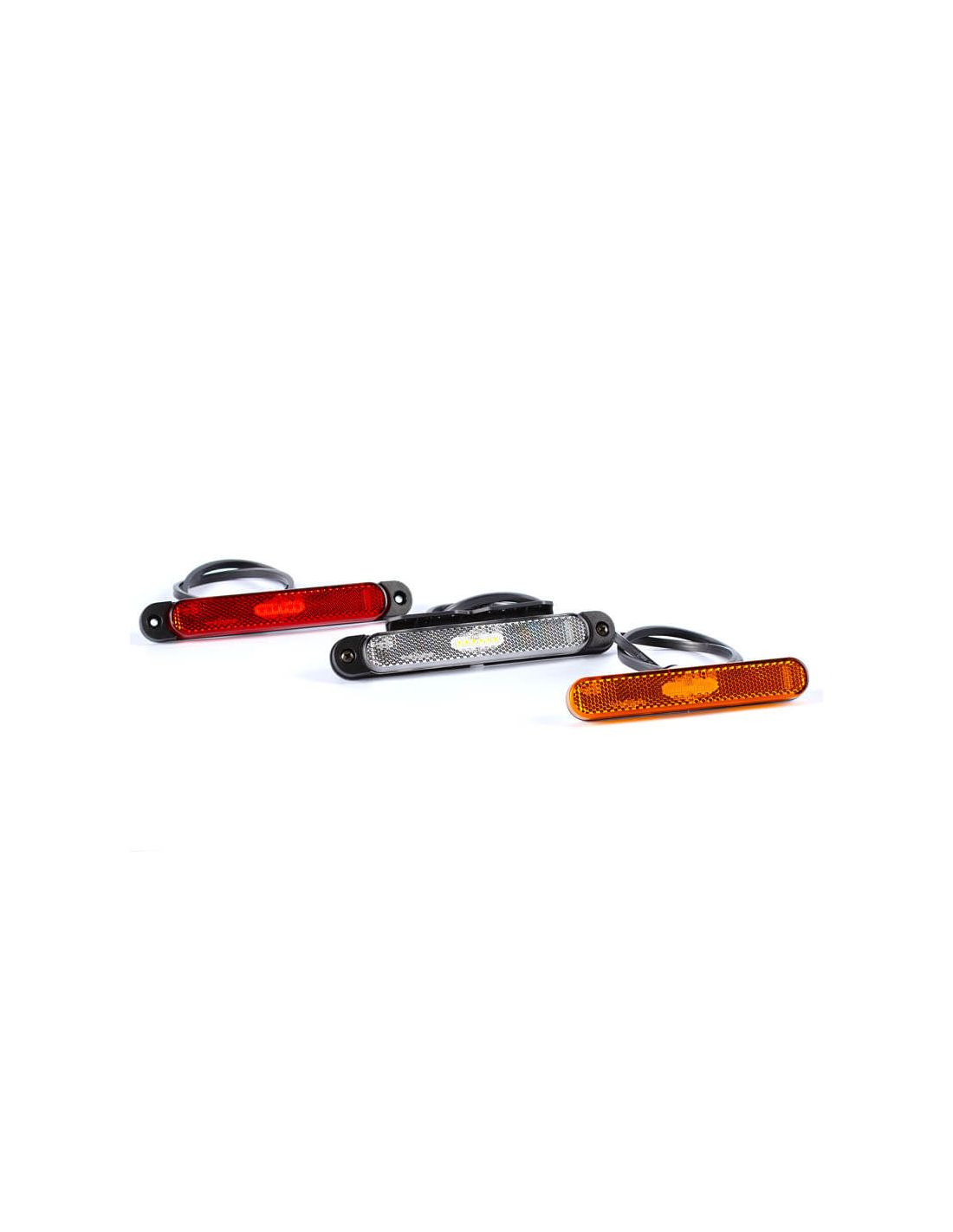 Barra LED de galibo fina y alargada FT-065 LED para instalar en 2 tornillos en superficie, disponible en color blanco para la parte delantera, roja para la parte trasera Y naranja para el lateral, cuenta con la Homologación correspondiente para luz de Galibo A, R1 y SM1 y reflectante IA.