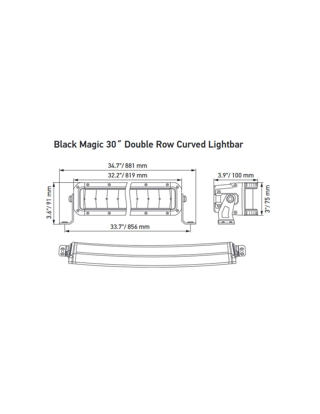 Barra LED curva de la serie Black Magic de Hella, esta Barra LED cuanta con dos líneas de 60 LEDs de alta potencia que ofrece una intensidad lumínica de 7.900Lm con un consumo de 134W, está Homologada con ECE-E149 y EMC R10 y CEPE 40. Son Válidas para 12V y para 24V y el haz de luz es Combo, combina luz de largo alcance con luz de trabajo. Incluye soportes para su sujeción.