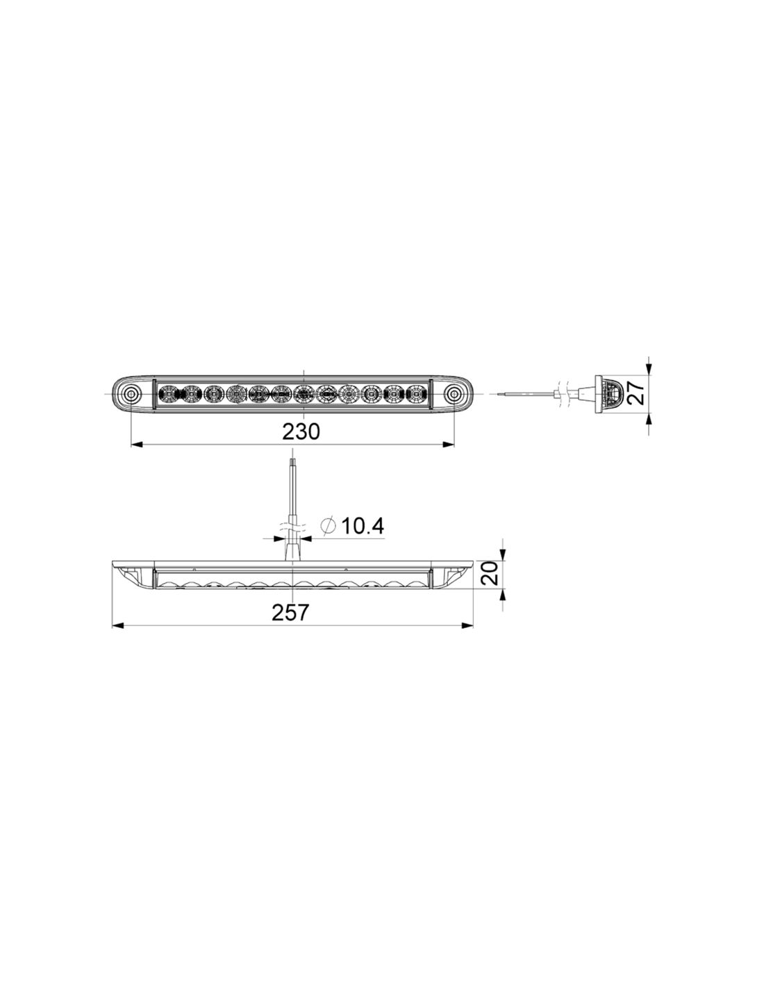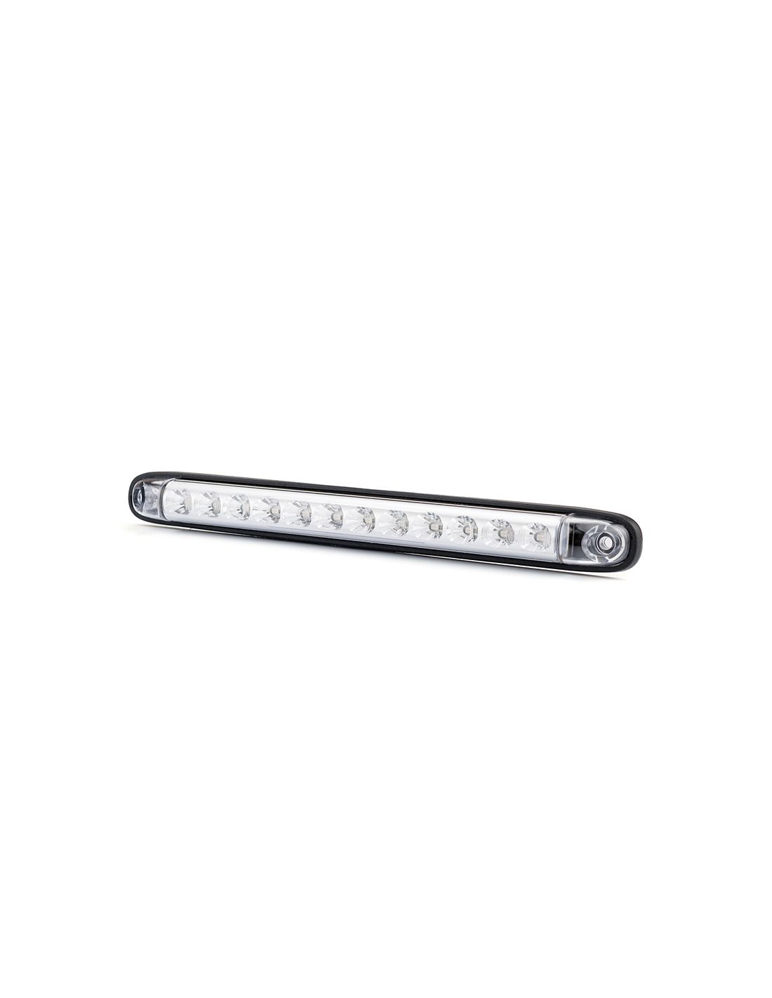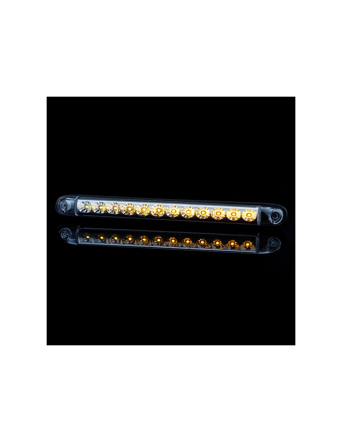 Barra LED trasera LKD 2249 con función de intermitente progresivo secuencial, 12 potentes LED, carcasa IP68 estanca, alimentación universal 12/24V y cable de conexión de 1 metro. Montaje horizontal o vertical, en cualquier lado del vehículo.