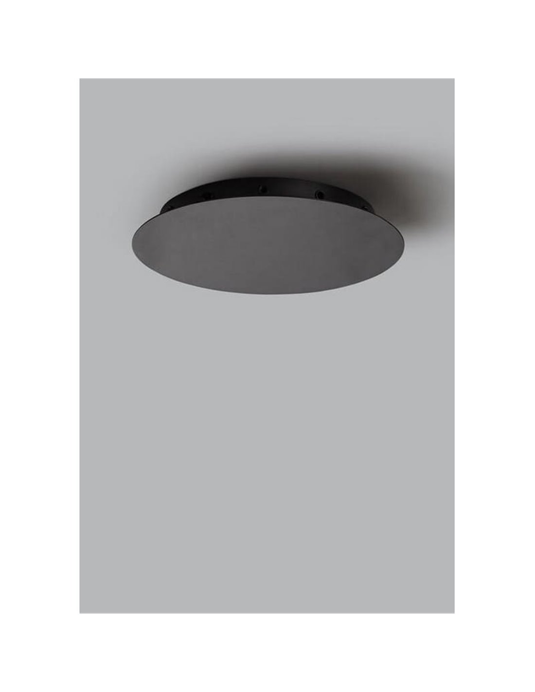 La base múltiple KOPA es el corazón del sistema decorativo de la serie KOPA. Se trata de una base de techo redonda en acabado negro diseñada para alojar hasta 12 colgantes KOPA multi (latón y nogal o negro y madera natural). Gracias a sus múltiples puntos de salida, permite distribuir los cables por toda la superficie de la base y jugar con diferentes alturas.