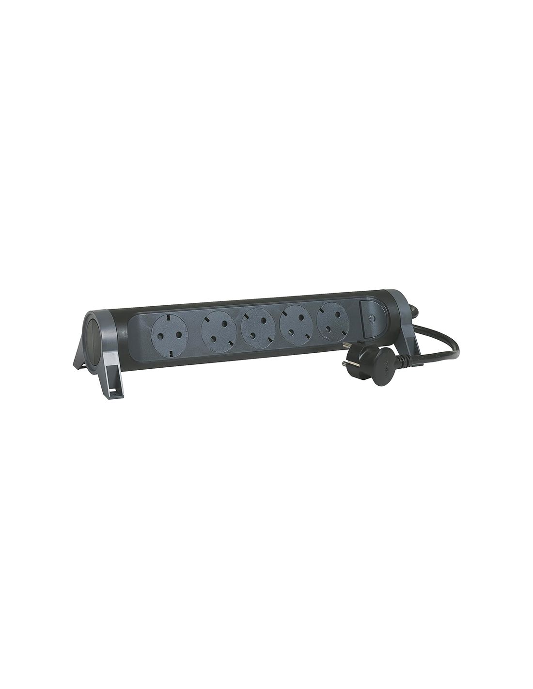 Con una toma orientada a 90°, es perfecta para enchufar transformadores voluminosos sin bloquear las demás tomas. Las otras 4 están colocadas a 45°, optimizando el acceso. Incorpora un interruptor iluminado ON/OFF azul que facilita el control del consumo eléctrico. Además, se puede fijar a pared o superficie mediante tornillos o bridas (no incluidas).