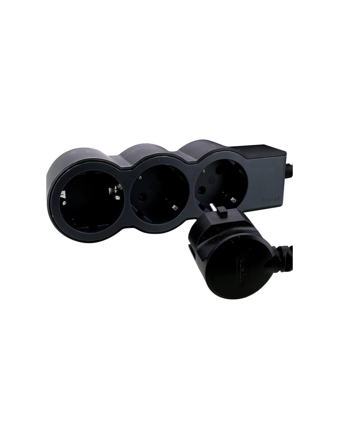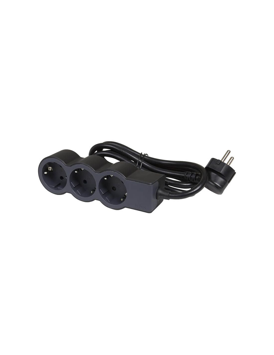 La base múltiple Legrand de 3 tomas 2P+T permite conectar hasta tres dispositivos eléctricos de forma segura en el hogar o la oficina. Con capacidad de 16A – 230V – 3680W, incorpora una toma orientada a 90° para cargadores voluminosos y dos tomas adicionales colocadas a 45° para facilitar el acceso sin bloquear salidas. Su diseño plano permite deslizarla bajo muebles o colocarla en superficies estrechas. Fabricada en termoplástico de alta resistencia, con cable 3G 1,5 mm² de 3 metros.