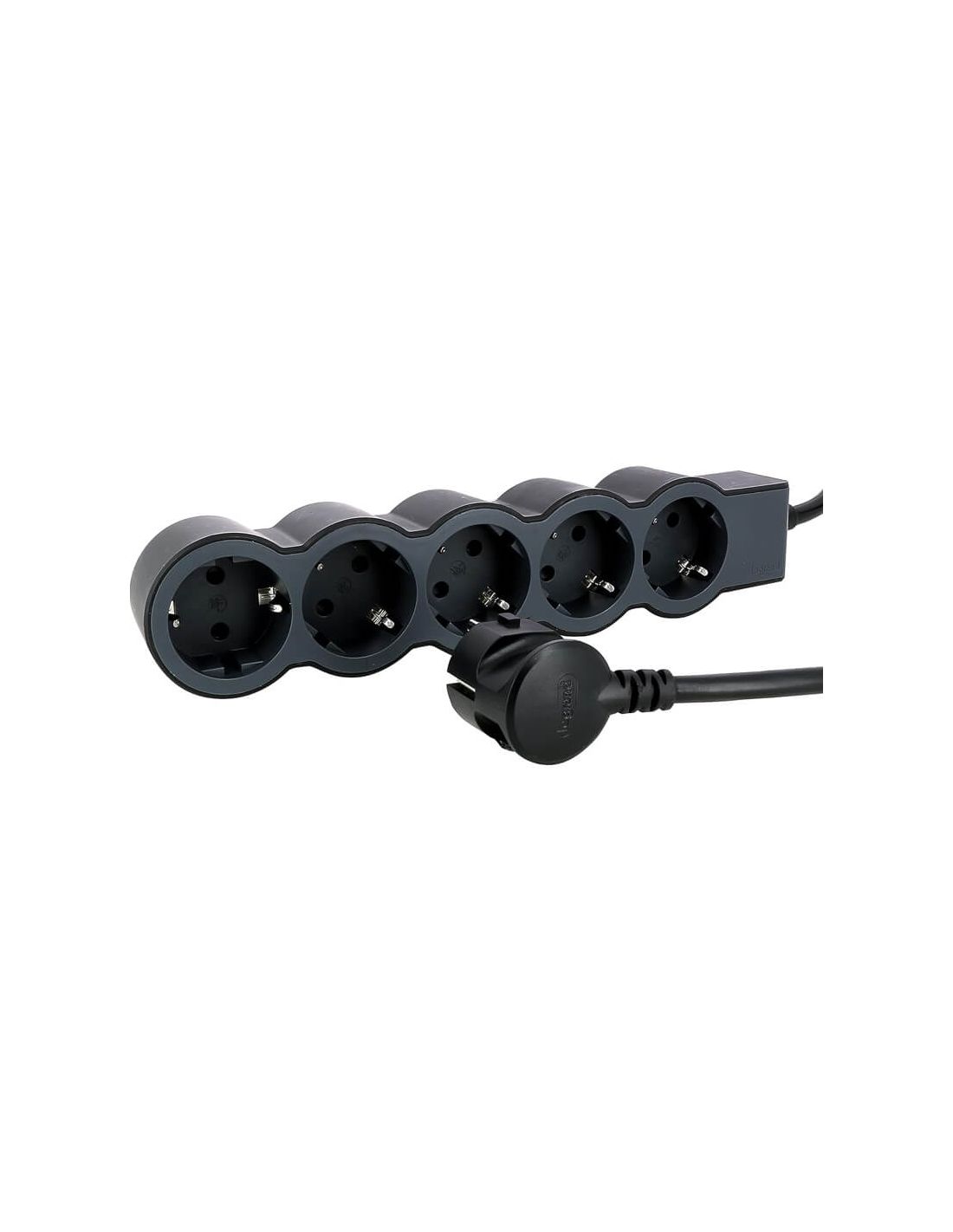 a base múltiple Legrand de 5 tomas 2P+T permite conectar hasta cinco dispositivos eléctricos de forma segura en el hogar, oficina o espacios de trabajo. Con una capacidad de 16A – 230V – 3680W, incluye una toma orientada a 90° para cargadores voluminosos y cuatro tomas inclinadas a 45° para un acceso cómodo sin bloquear enchufes. Su diseño plano facilita colocarla debajo de muebles o en zonas estrechas. Fabricada en termoplástico libre de halógenos, incorpora cable 3G 1,5 mm² de 3 metros en PVC.