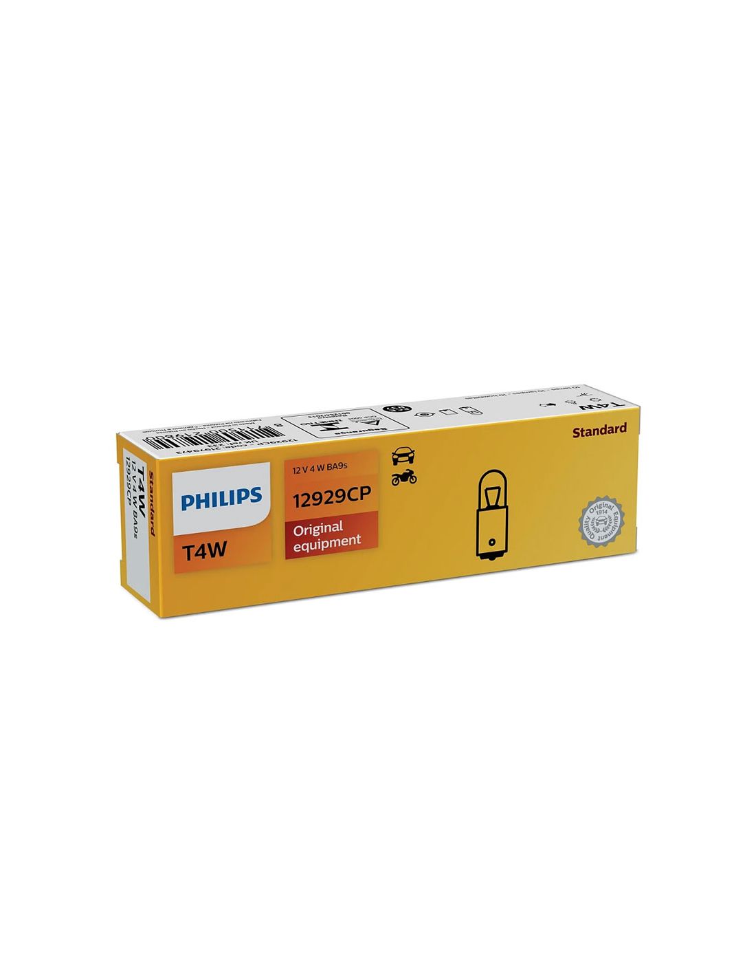 La bombilla T4W Philips Vision 12929CP es una lámpara convencional de 12V y 4W diseñada para aplicaciones de señalización e iluminación interior en vehículos. Con casquillo BA9s, ofrece una iluminación fiable y duradera con calidad de equipo original Philips.