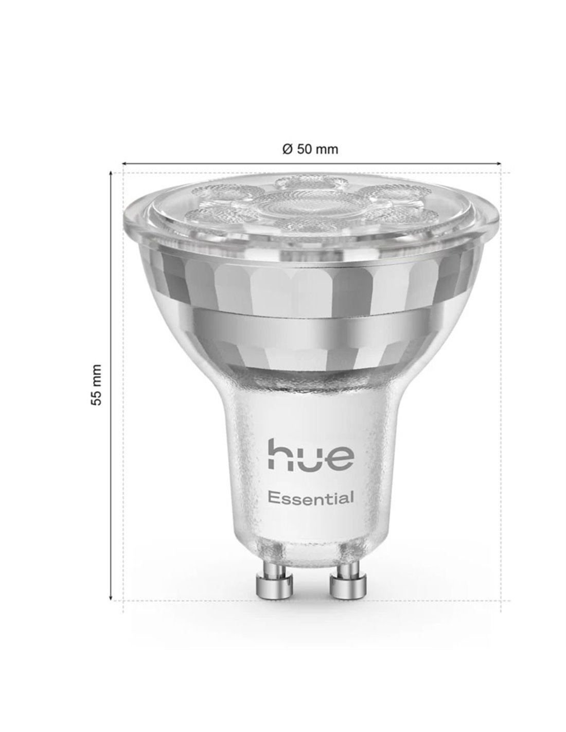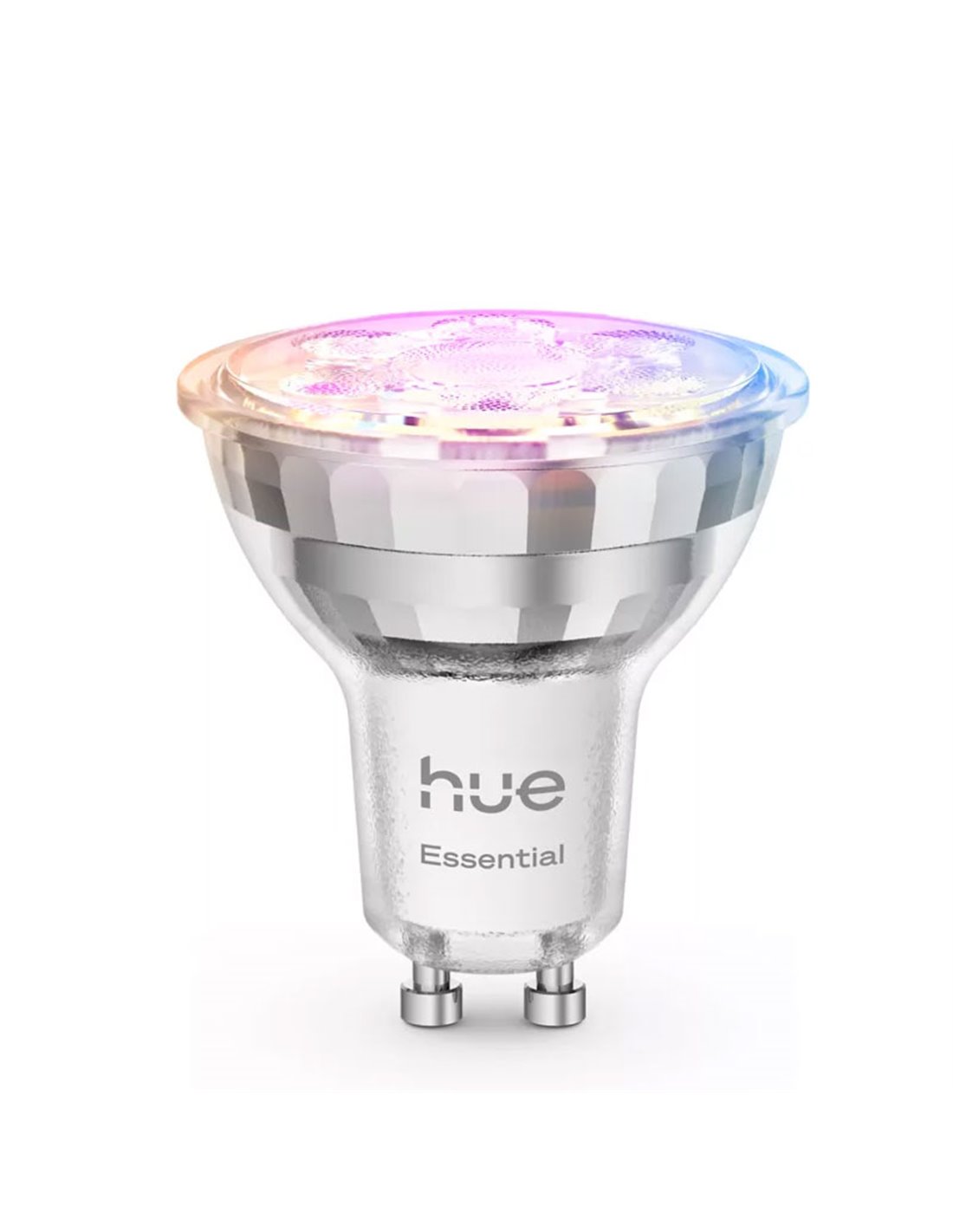 La bombilla Philips Hue GU10 White & Color Ambiance ofrece 345 lm de luz blanca regulable 2000–6500 K y millones de colores para tus focos empotrables. Controla por Bluetooth desde la app Hue o añade Hue Bridge para automatizaciones, control fuera de casa y asistentes de voz. Formato GU10 estándar, instalación “enroscar y listo”, con atenuación suave y escenas predefinidas para trabajar, relajarte o ambientar reuniones. Ideal para cocinas, pasillos, salones y vitrinas, permite crear acentos de luz precisos y personalizables en tu hogar.