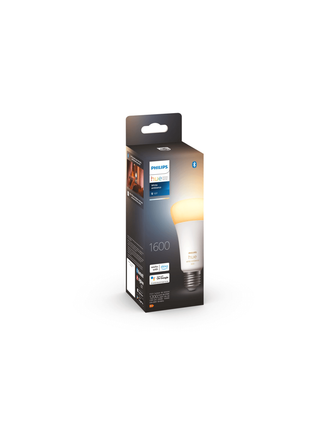 La bombilla inteligente formato A67 y casquillo E27 proporciona una temperatura de color de 2.200K a 6.500K con un flujo de 1.600 lúmenes y una potencia máxima de 13W. Disfruta de una iluminación de calidad en tu rincón de lectura favorito. Es regulable mediante la aplicación Hue e interruptor y es compatible con asistentes de voz como Alexa o HomeKit, entre otros. Gracias a estas funciones podrás disfrutar de lo último en tecnología para la iluminación interior.